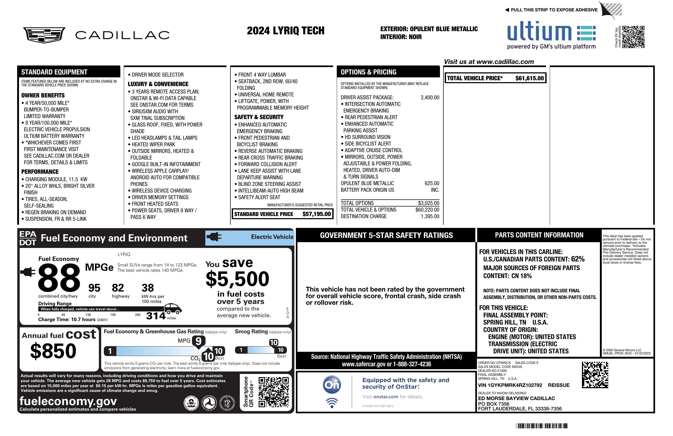 2024 Cadillac Lyriq 4dr Tech W/1 Sa