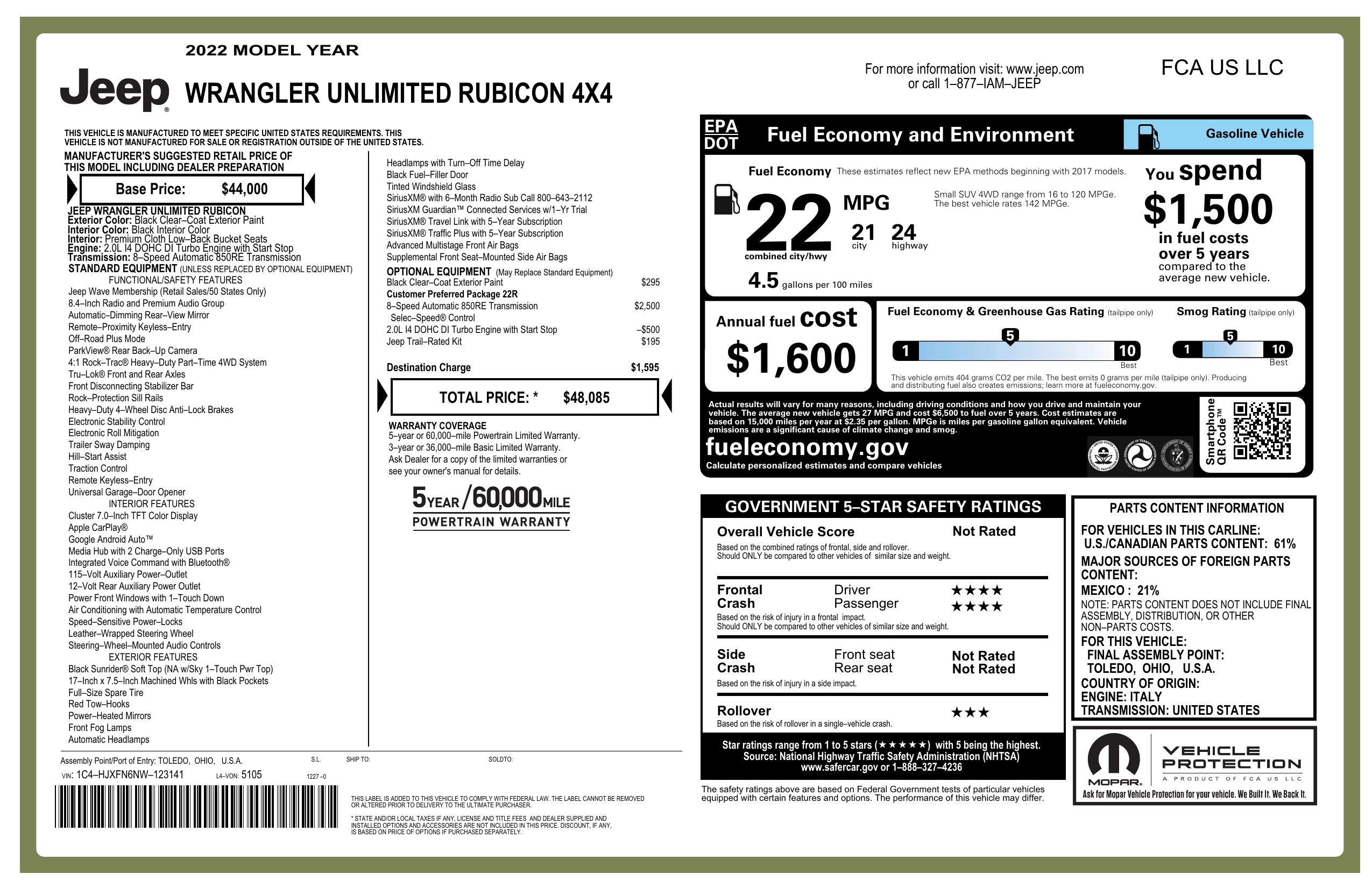 2022 Jeep Wrangler Unlimited Rubicon 4x4