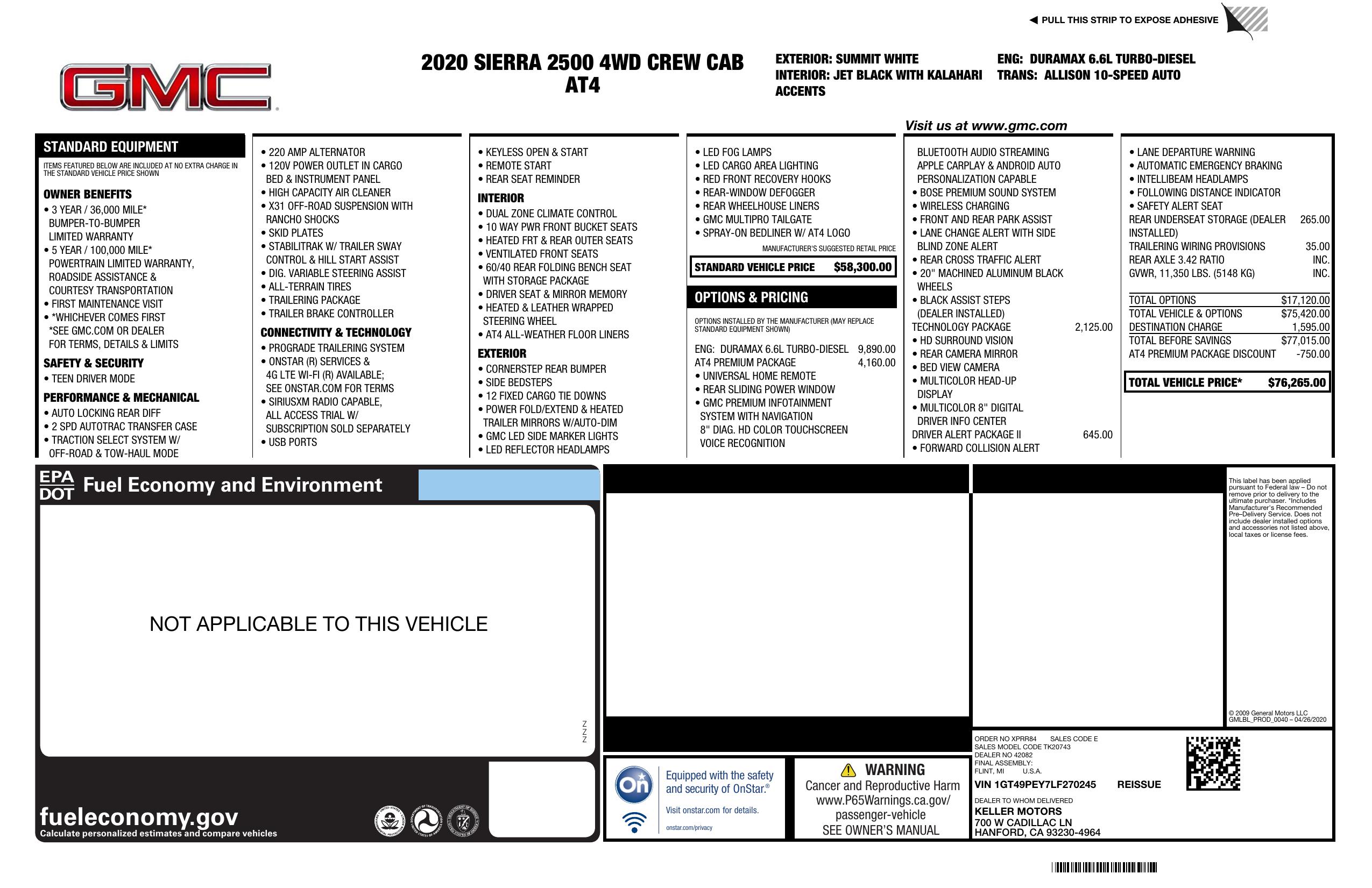 2020 GMC Sierra 2500 Hd 4 Wd Crew Cab 159" At4
