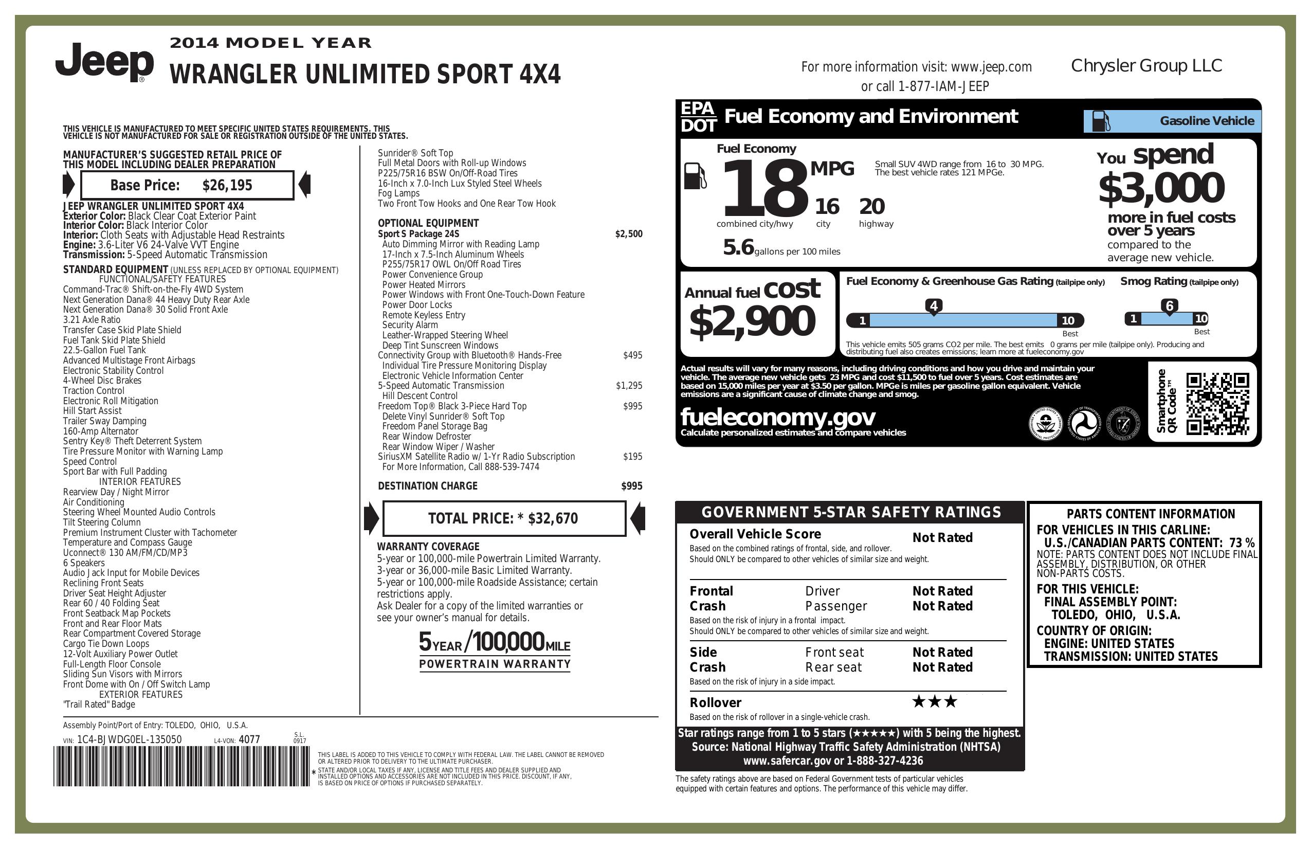 2014 Jeep Wrangler Unlimited 4 Wd 4dr Sport