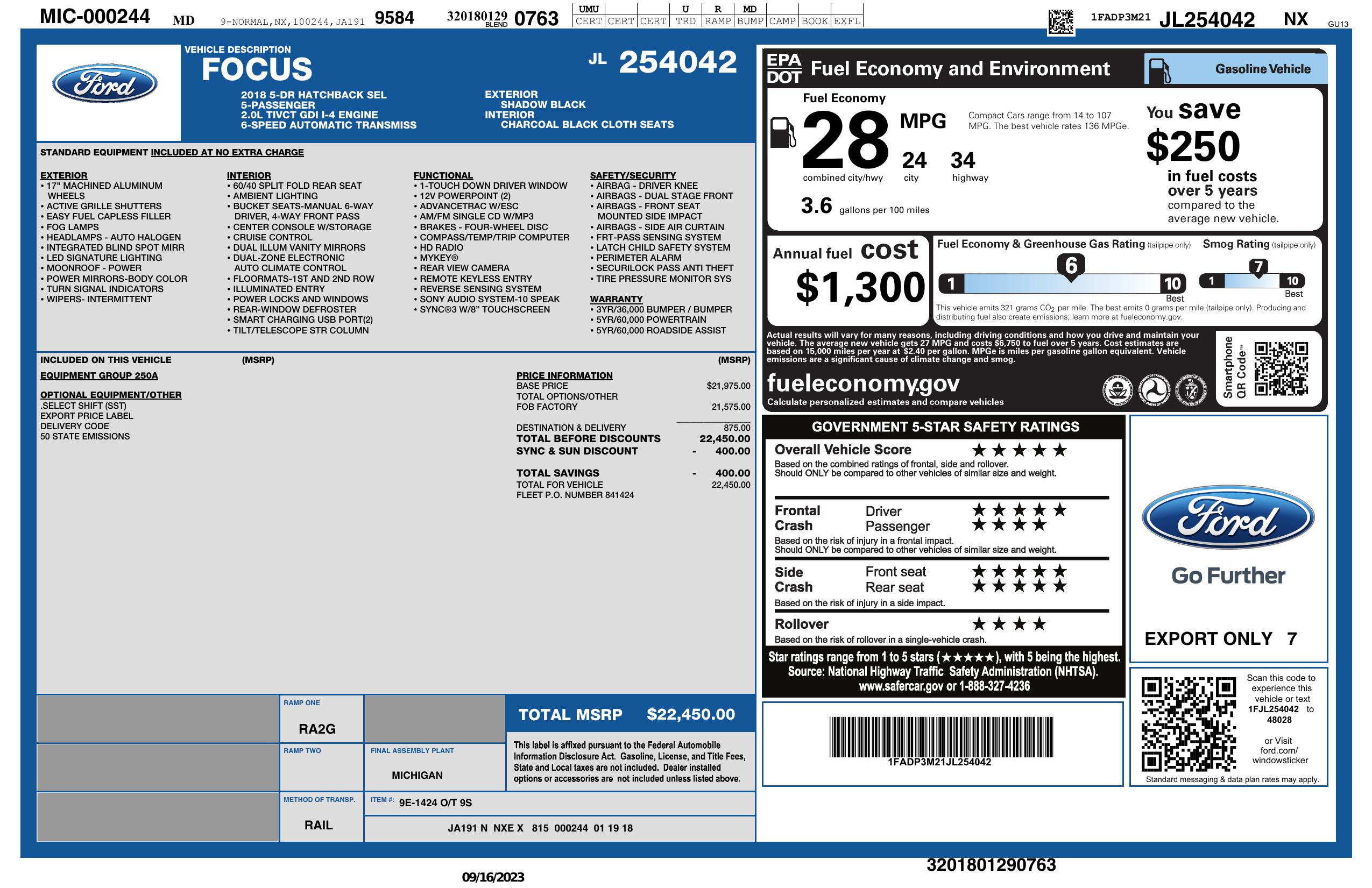2018 Ford Focus Sel Hatch