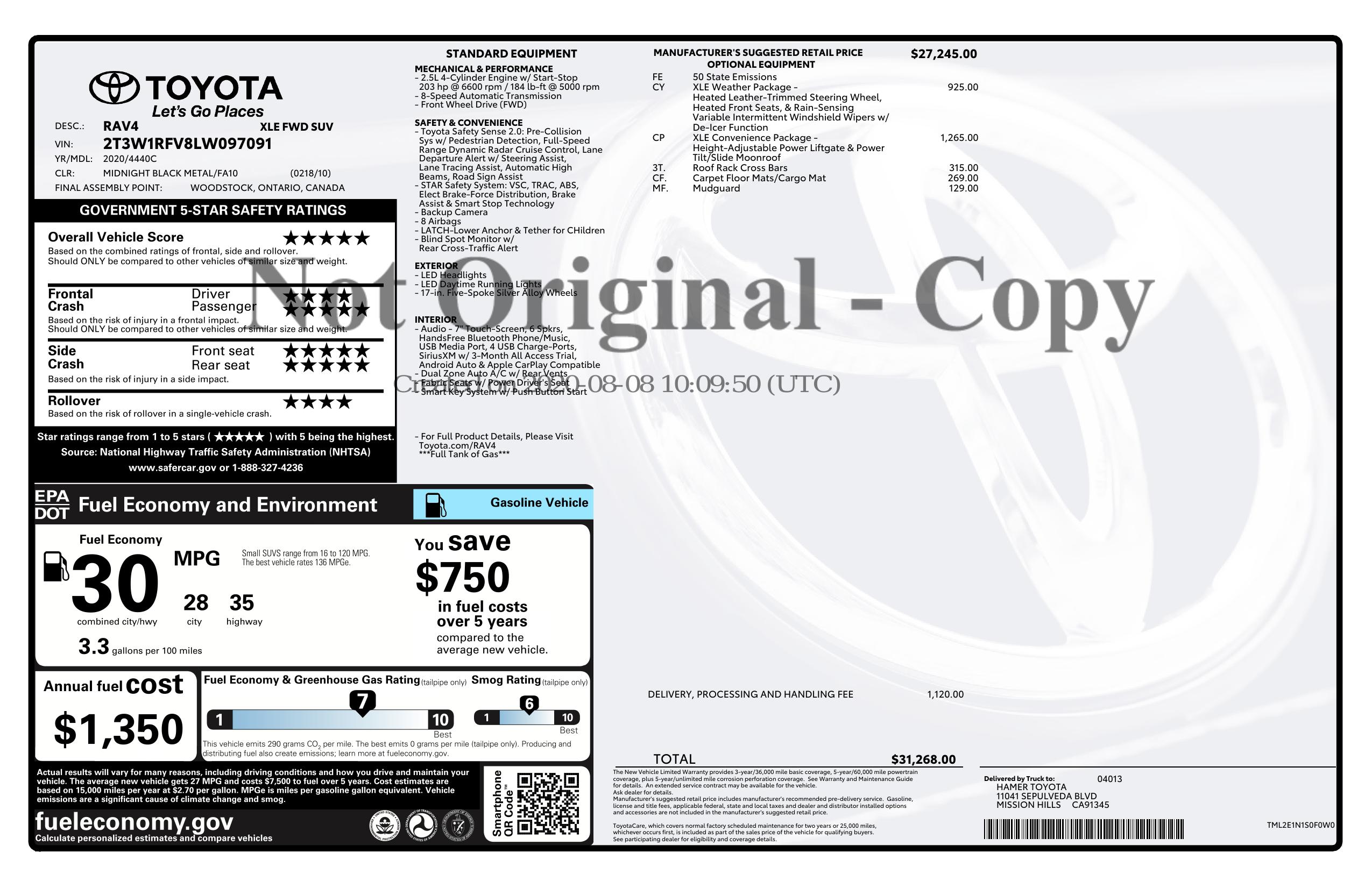 2020 Toyota Rav4 Xle Fwd (Natl)