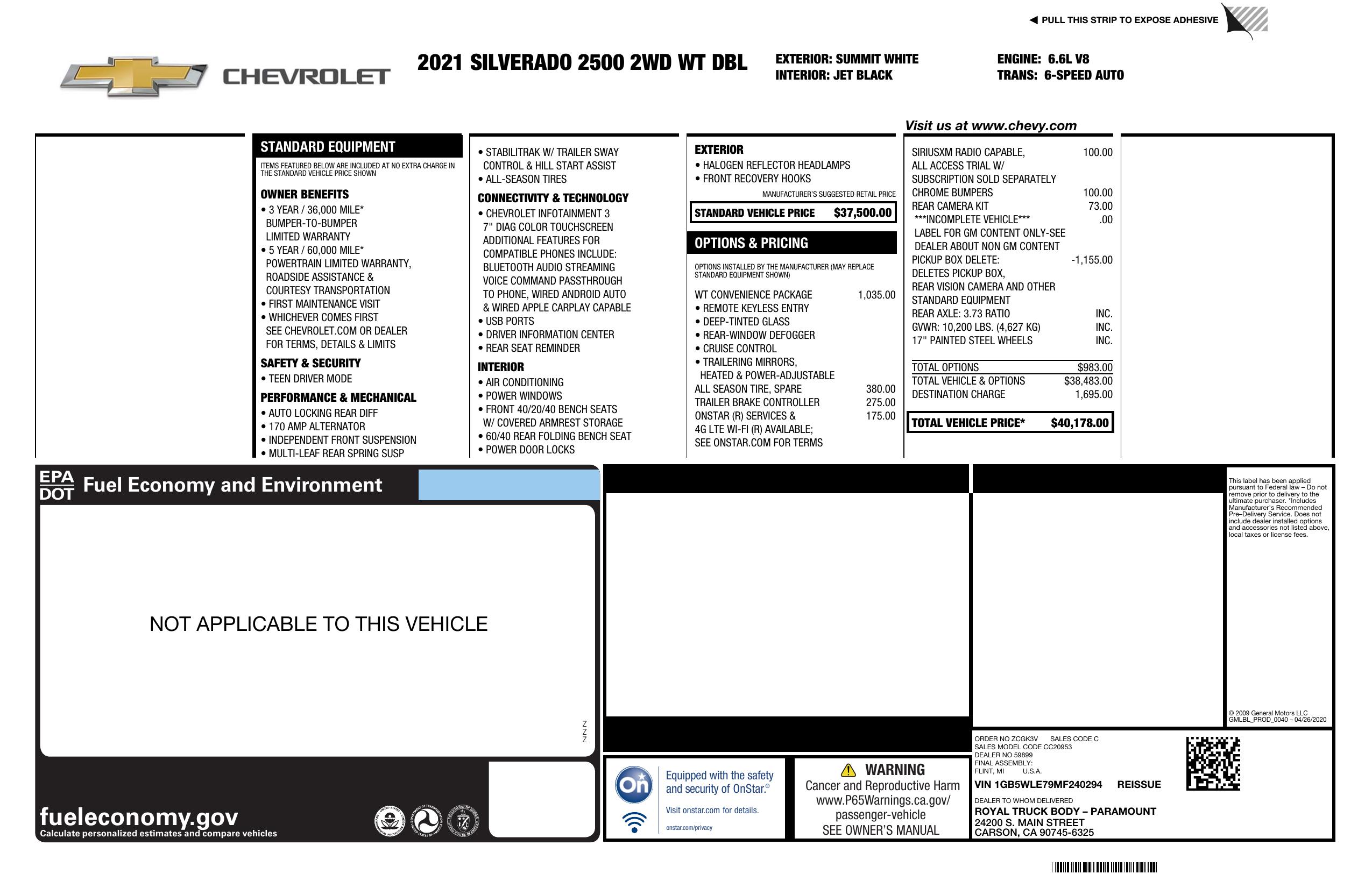 2021 Chevrolet Silverado 2500 Hd 2 Wd Double Cab 162" Work Truck