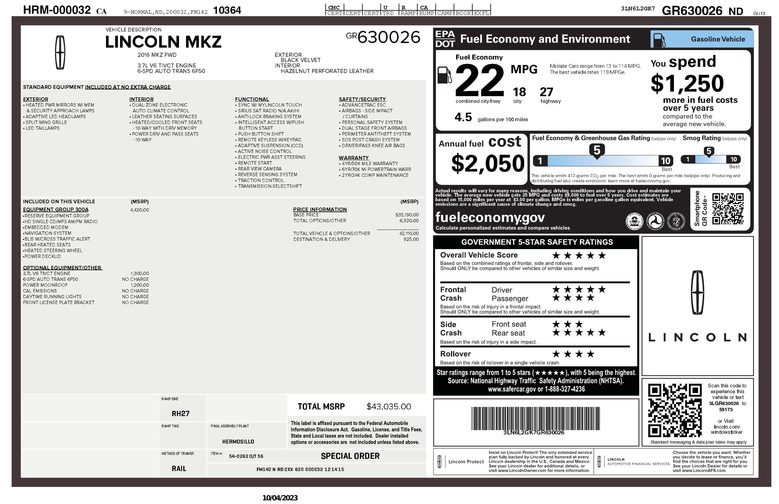 2016 Lincoln Mkz 4dr Sdn Fwd