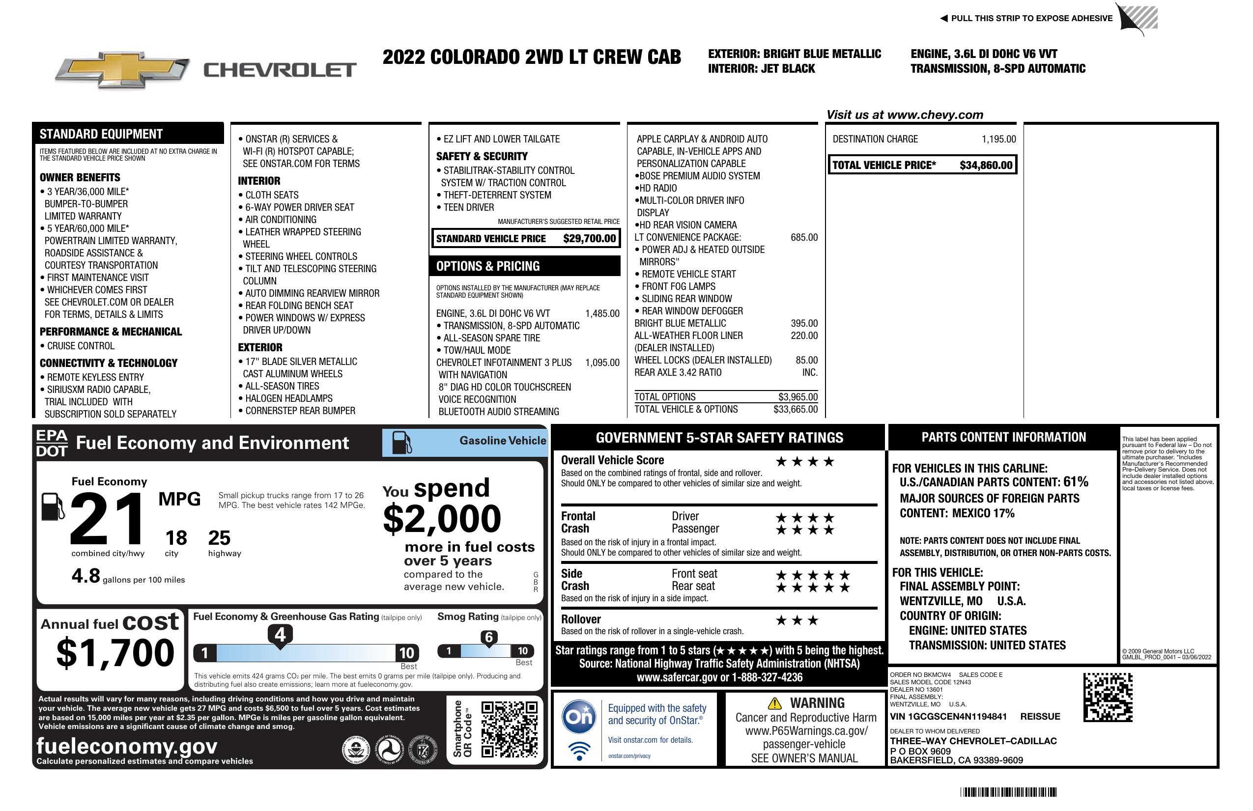 2022 Chevrolet Colorado 2 Wd Crew Cab 128" Lt
