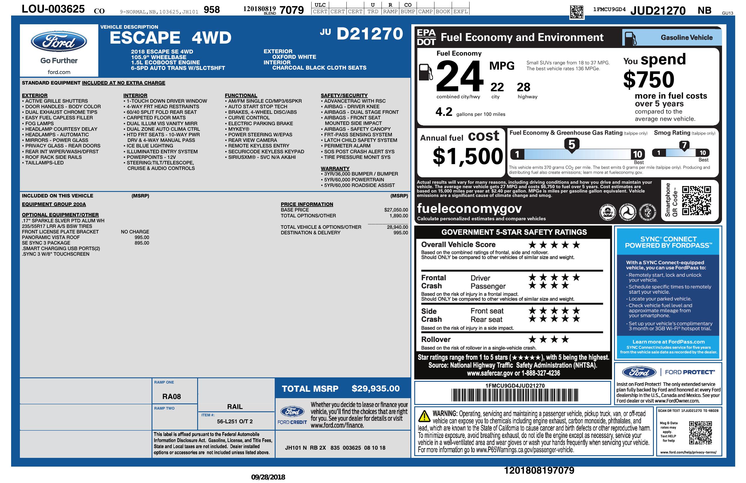 2018 Ford Escape Se 4 Wd