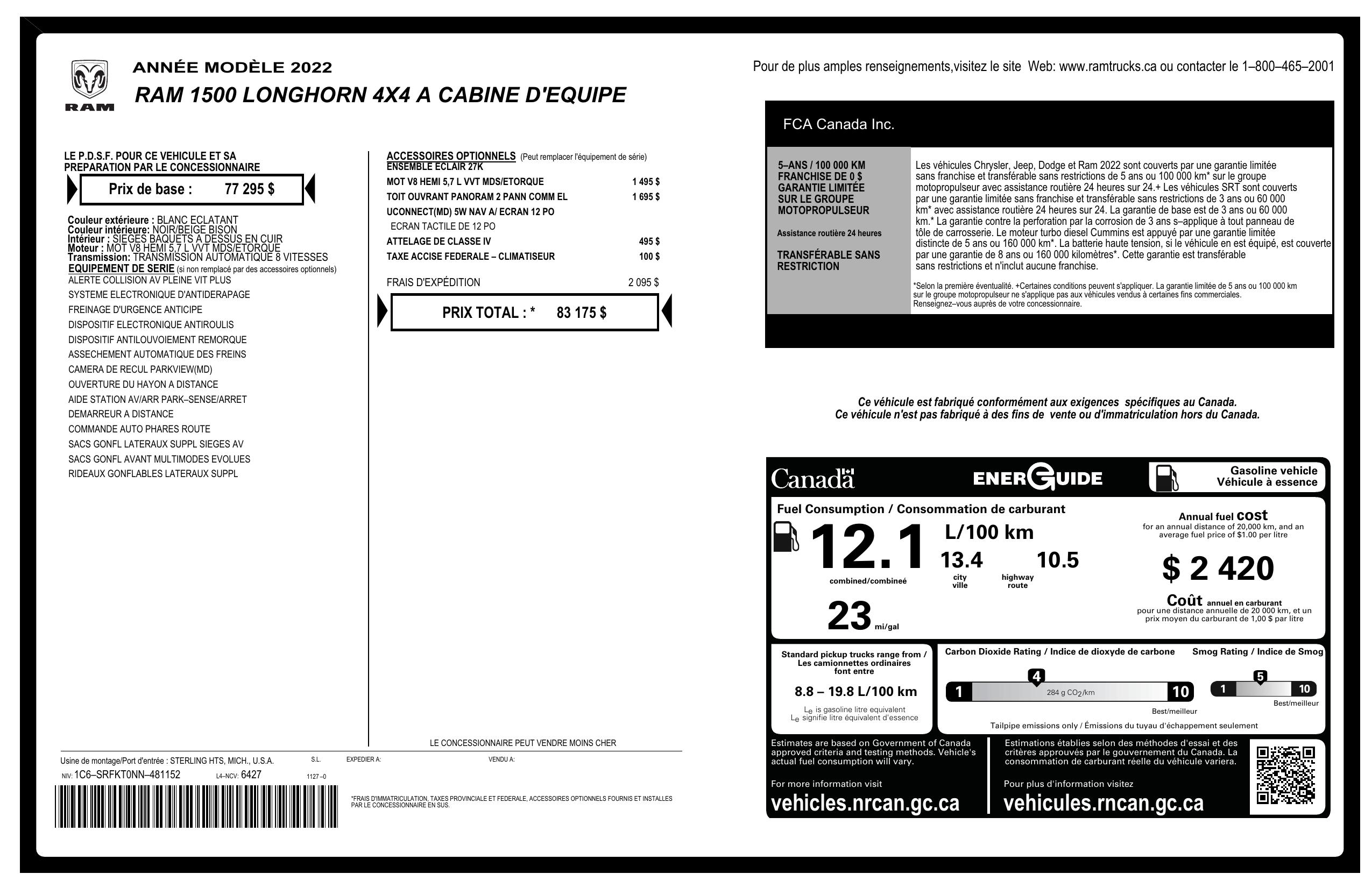 2022 Ram 1500 Limited Longhorn 4x4 Crew Cab 5'7" Box