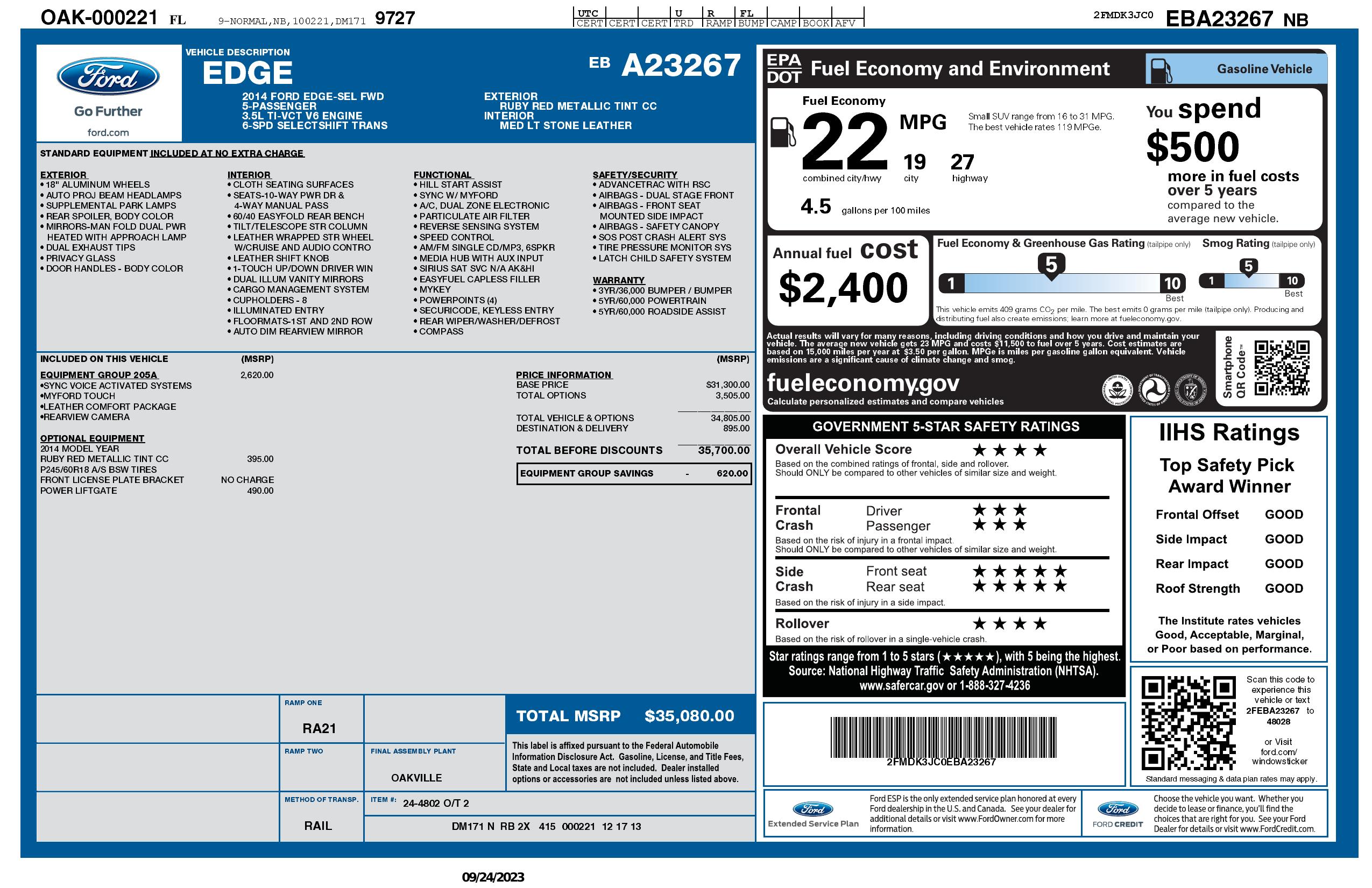 2014 Ford Edge 4dr Sel Fwd