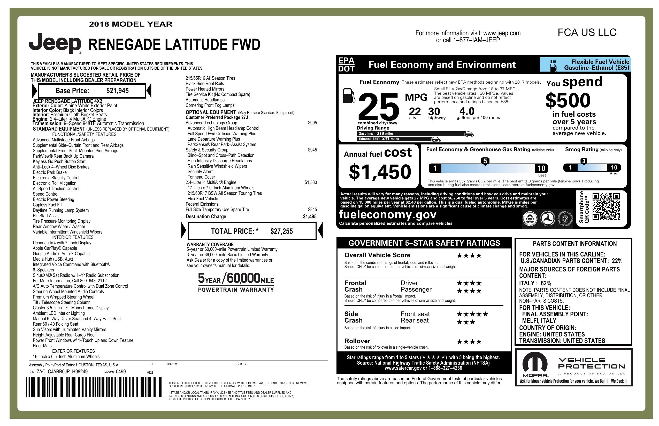 2018 Jeep Renegade Latitude Fwd