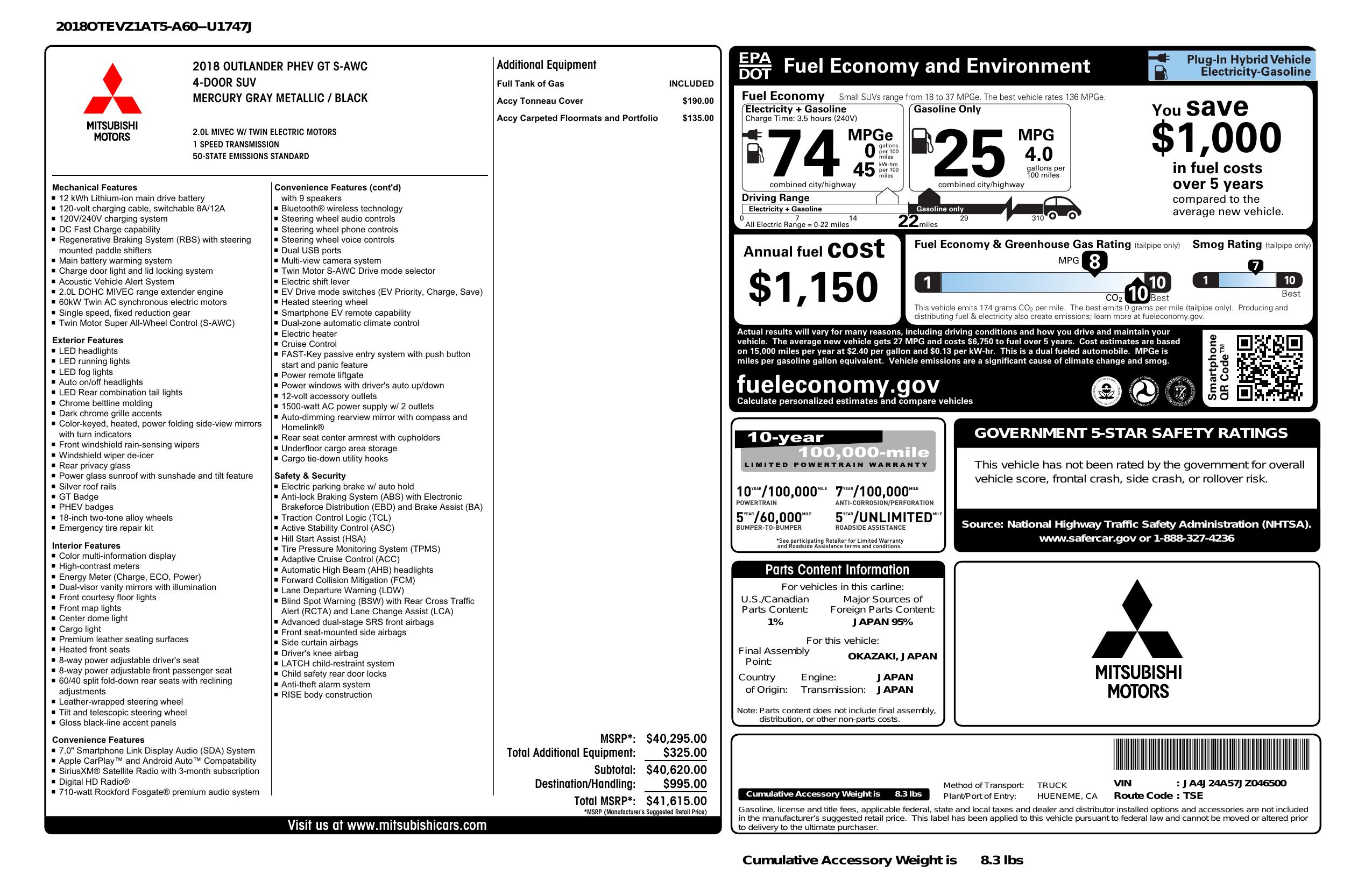 2018 Mitsubishi Outlander Phev Gt