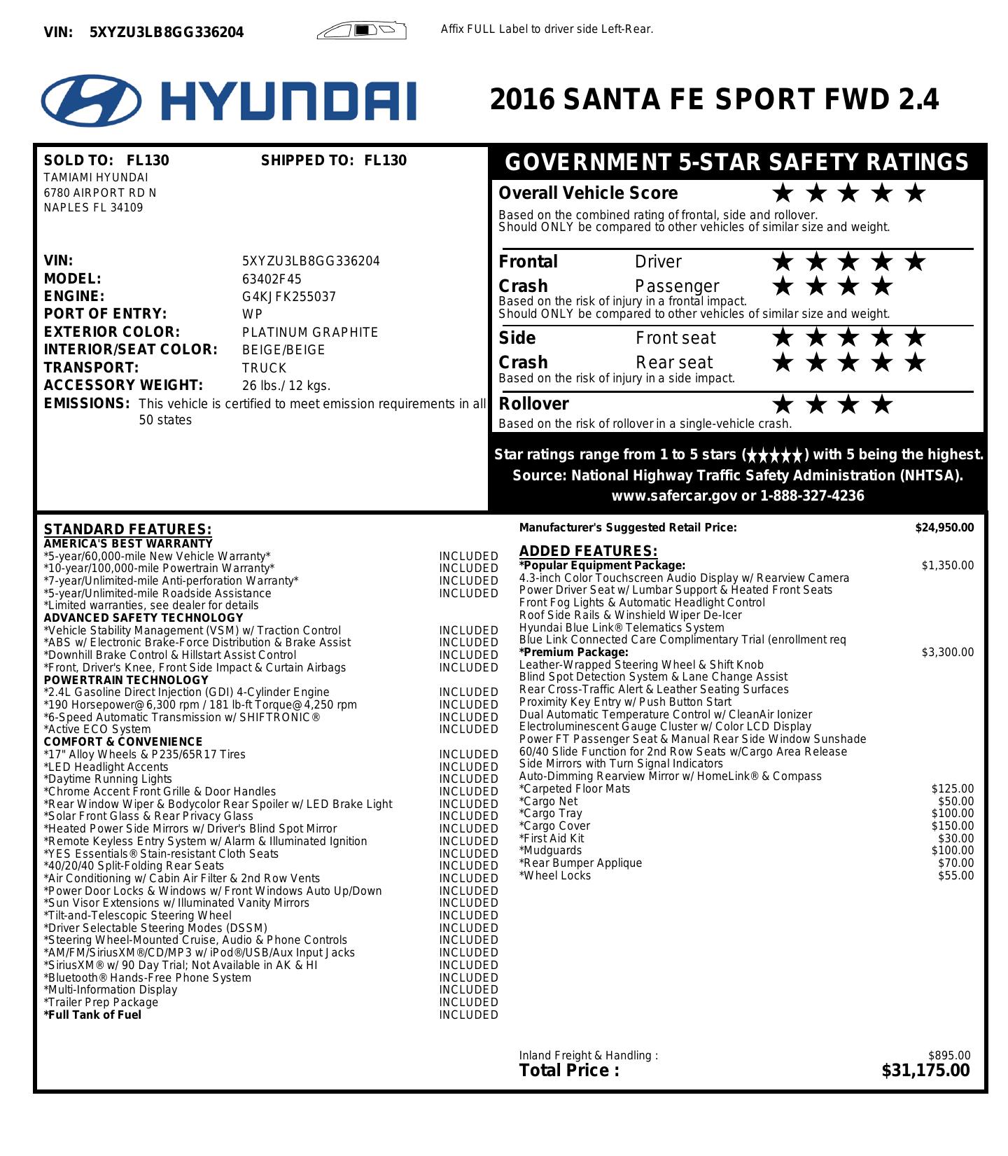 2016 Hyundai Santa Fe Sport Fwd 4dr 2.4