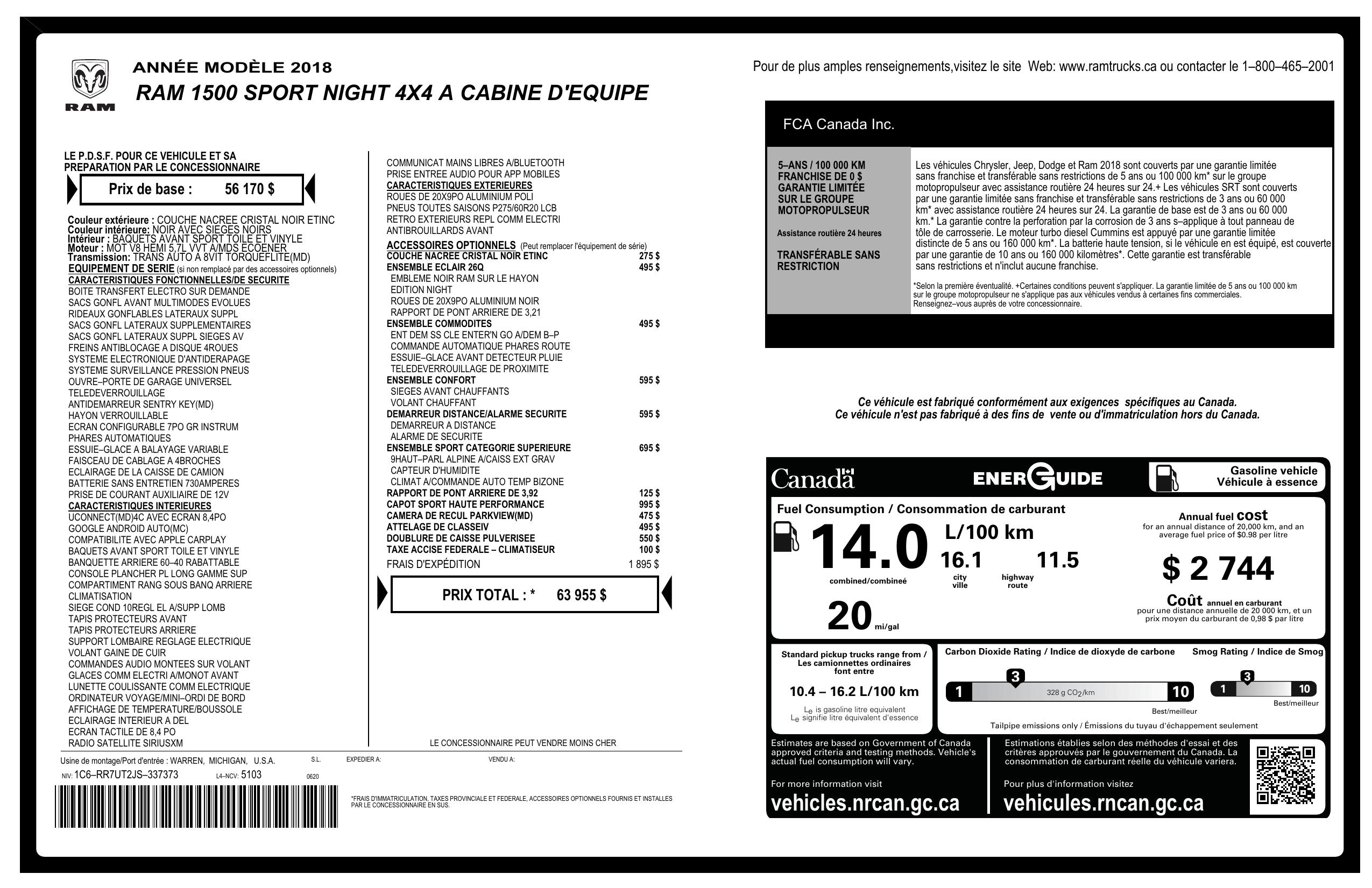2018 Ram 1500 Night 4x4 Crew Cab 6'4" Box *Ltd Avail*
