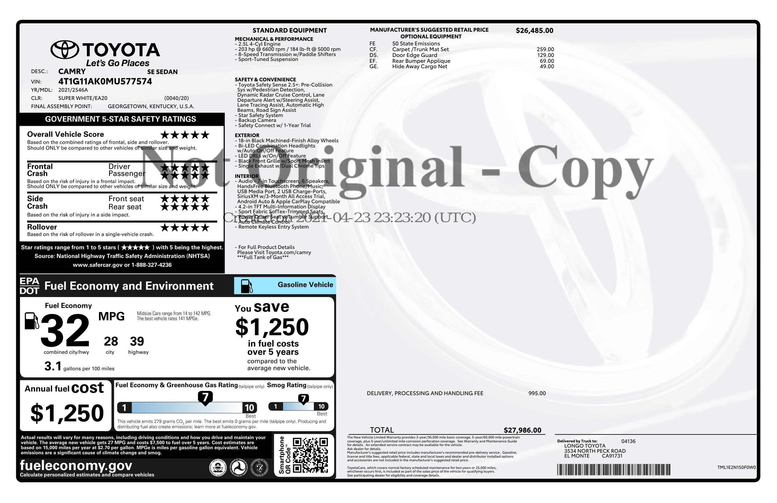2021 Toyota Camry Se Auto (Natl)