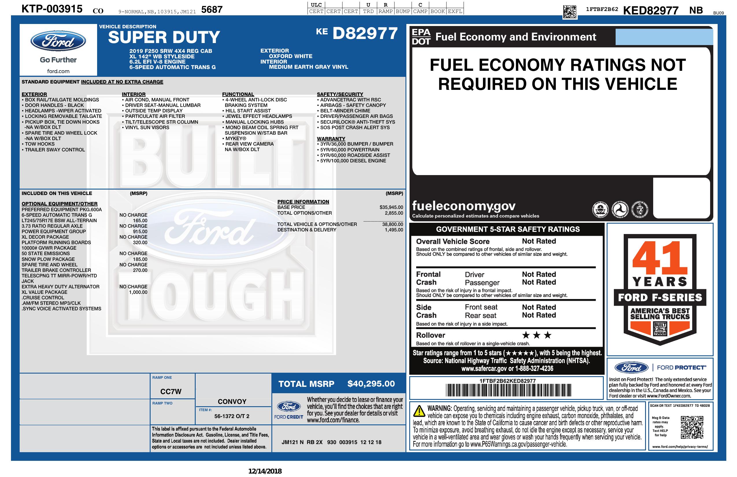2019 Ford Super Duty F 250 Srw 4 Wd Reg Cab 8' Box