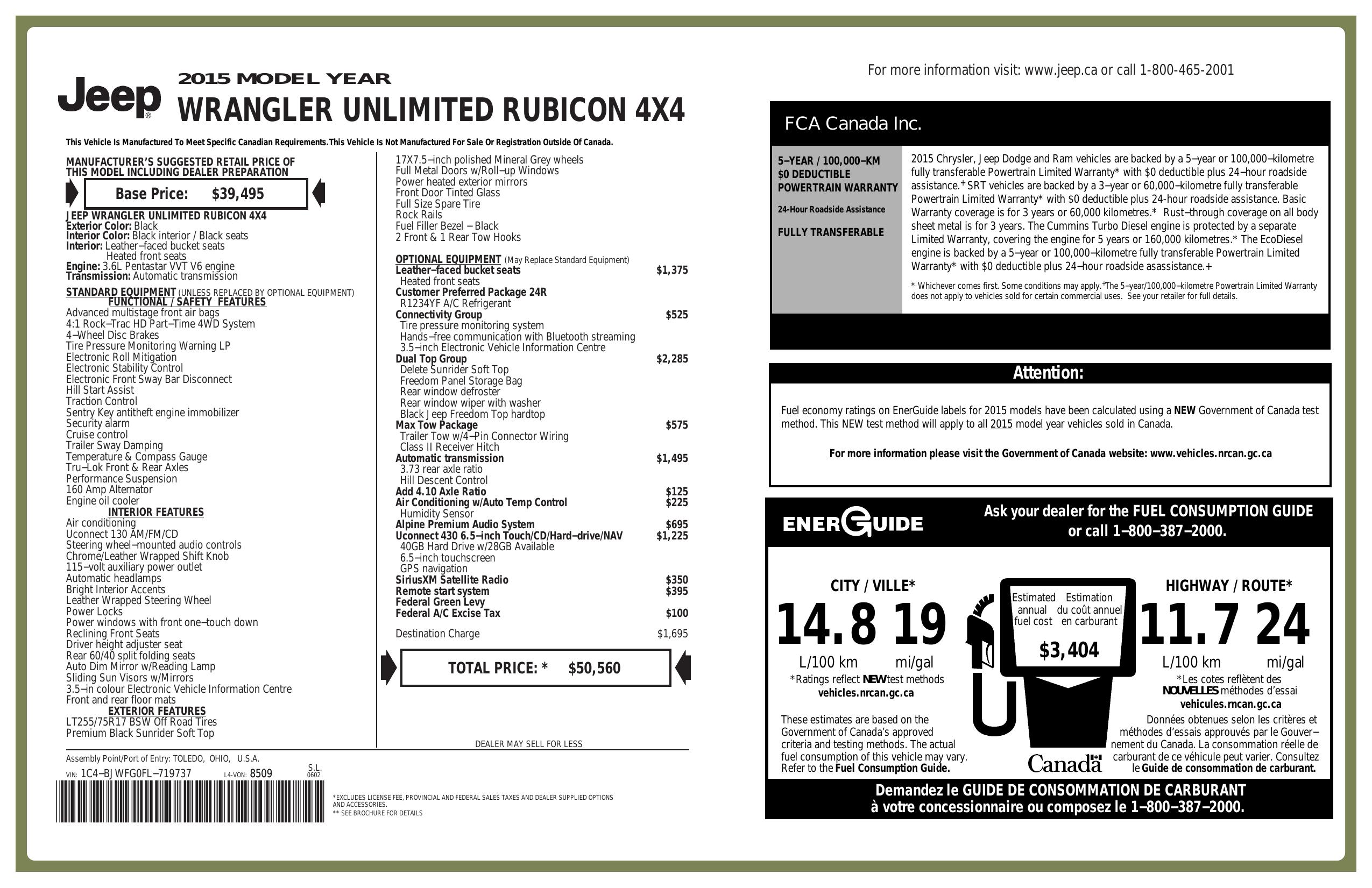 2015 Jeep Wrangler Unlimited 4 Wd 4dr Rubicon