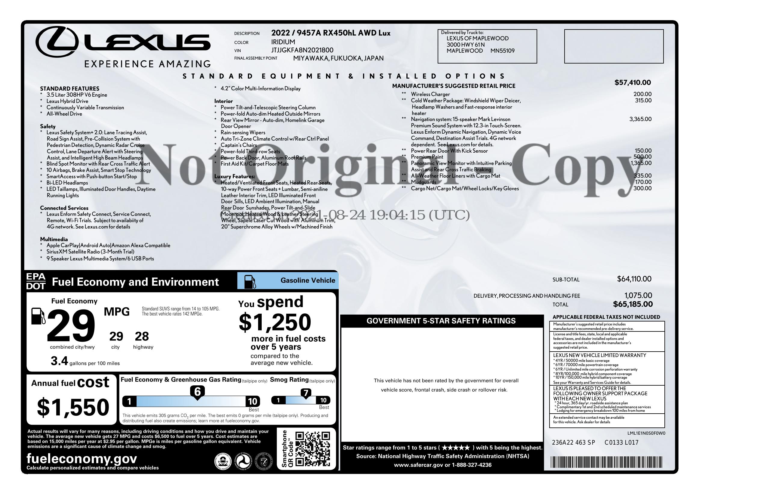 2022 Lexus Rx Rx 450h L Luxury Awd