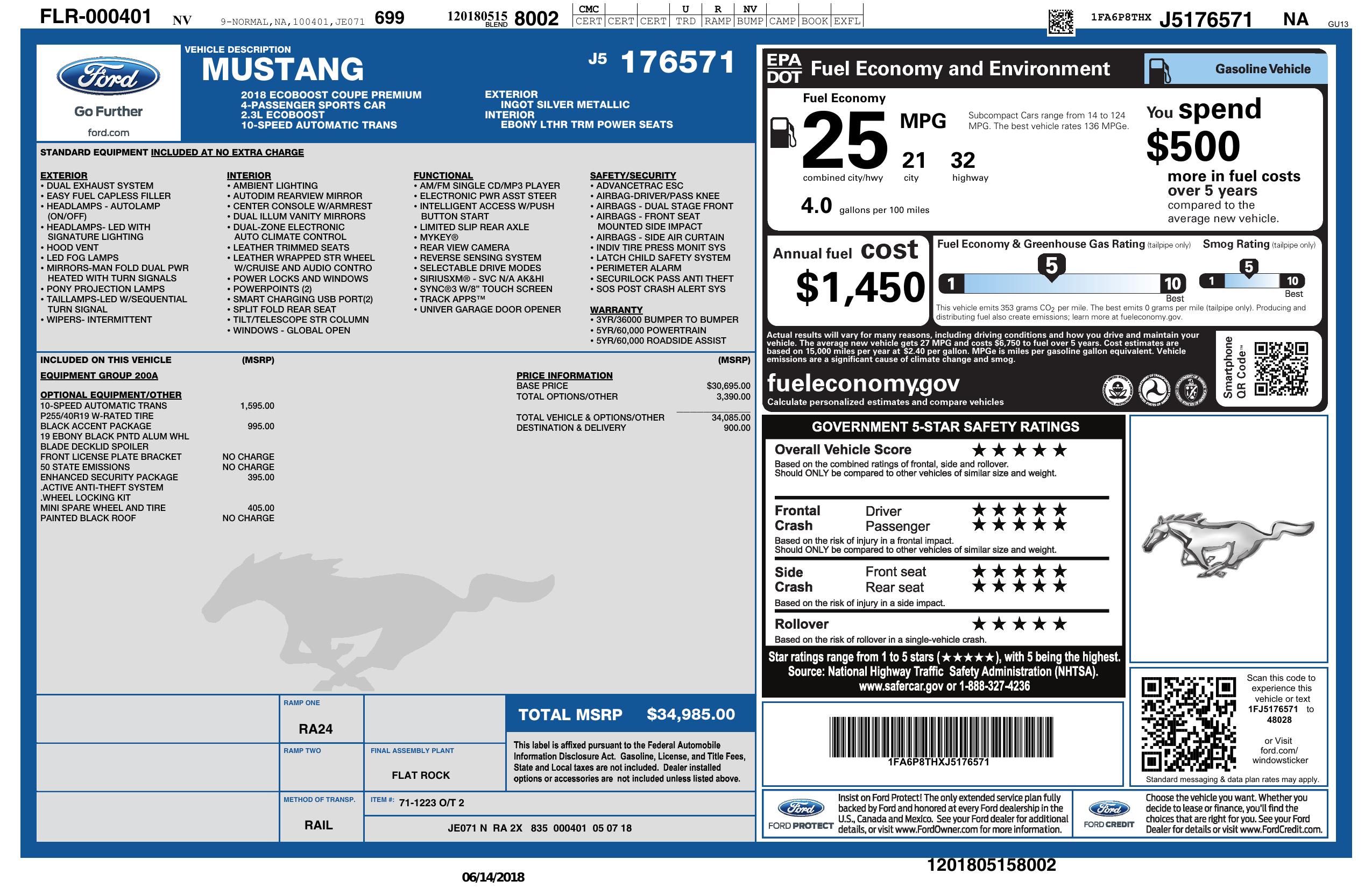2018 Ford Mustang Eco Boost Fastback