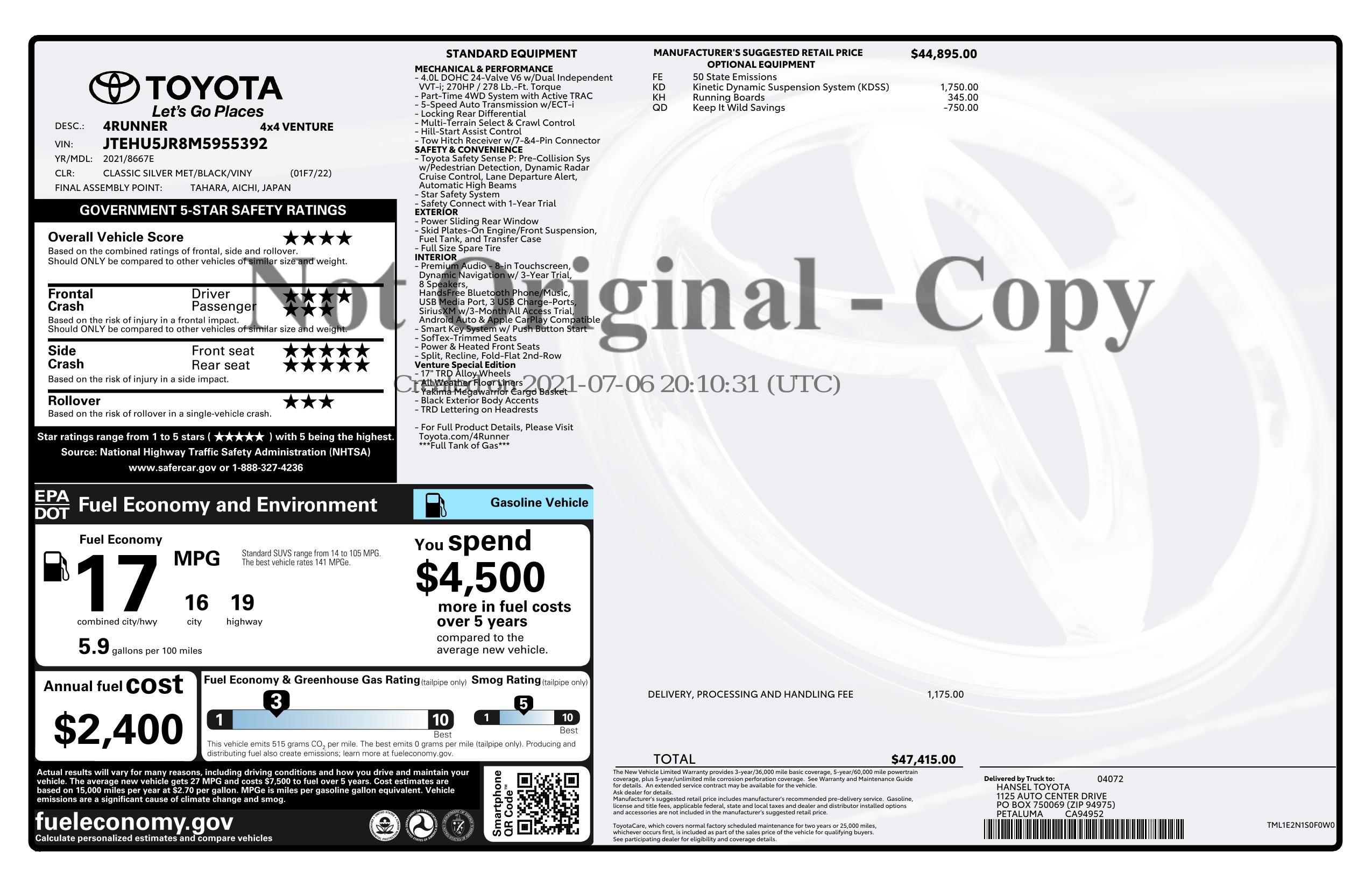 2021 Toyota 4 Runner Venture 4 Wd (Natl)