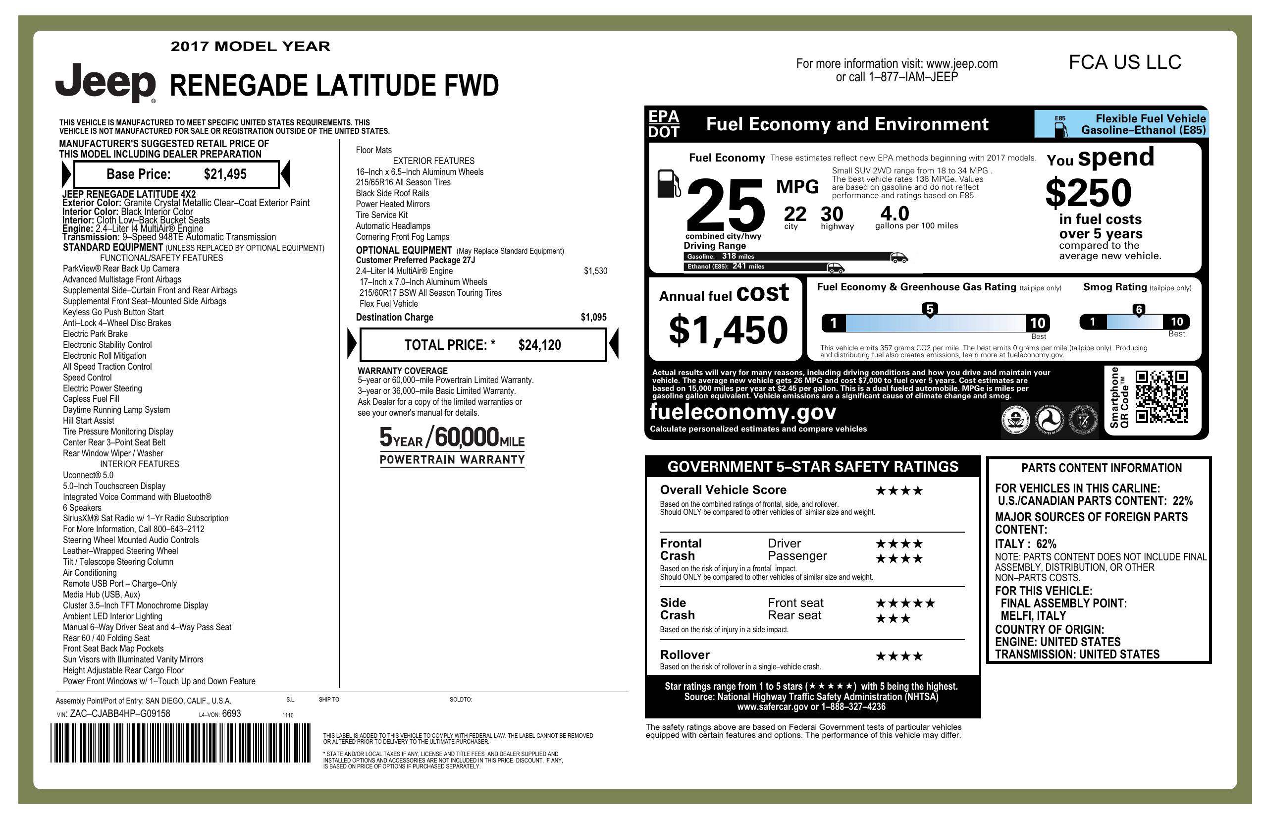 2017 Jeep Renegade Latitude Fwd
