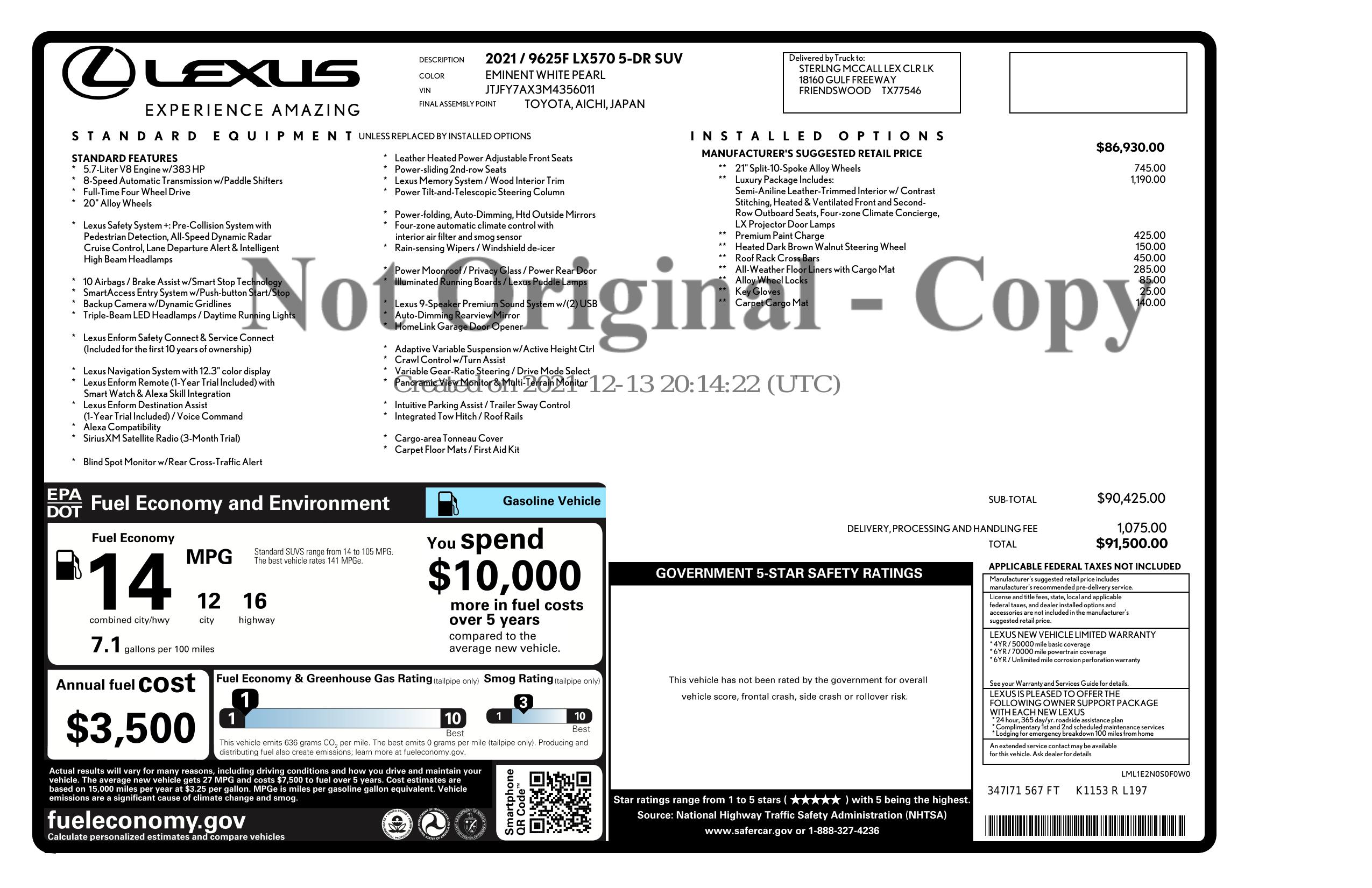 2021 Lexus Lx 570 Row 4 Wd