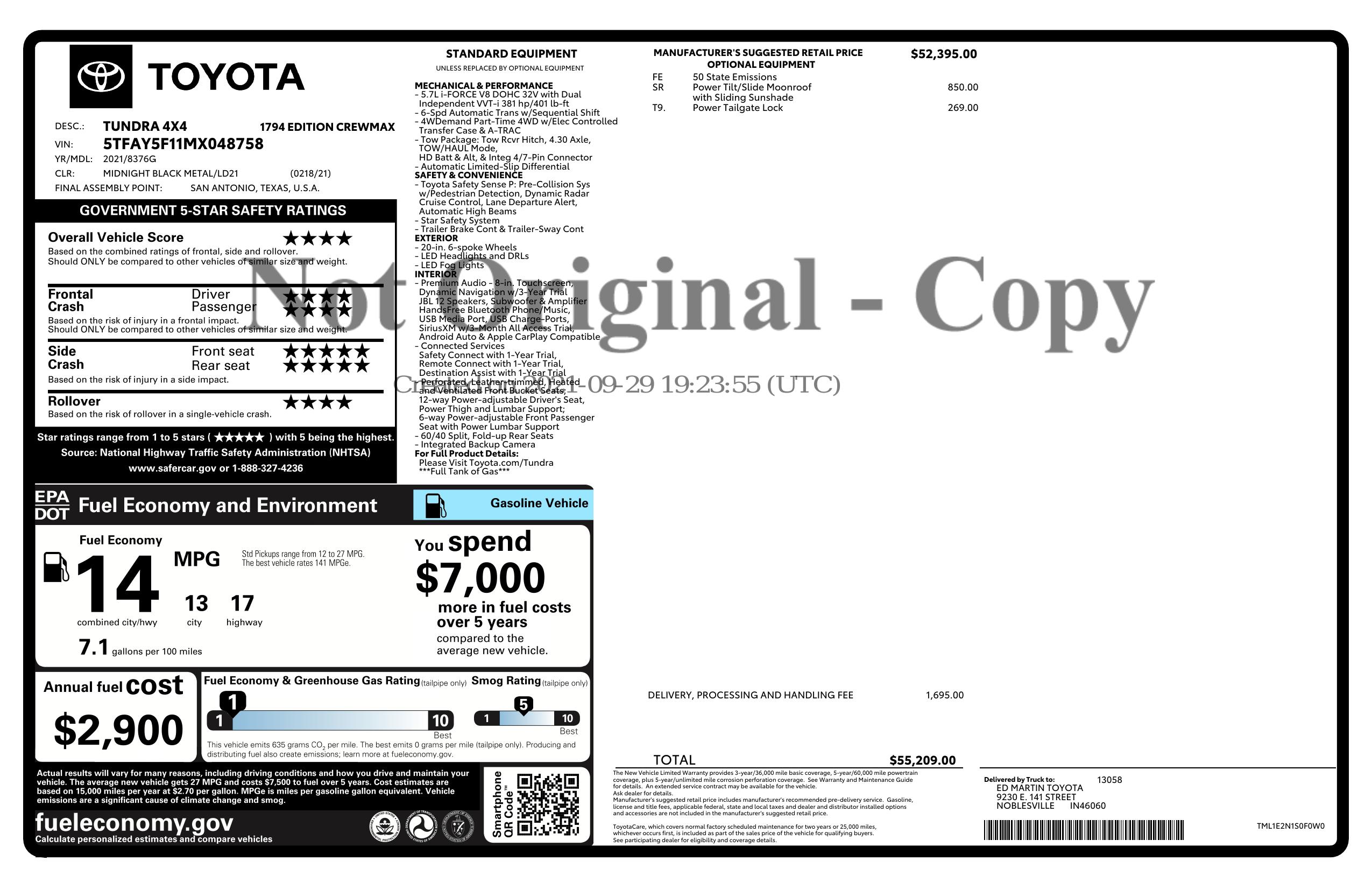 2021 Toyota Tundra 4 Wd Crew Max 5.5' Bed 5.7 L (Natl)