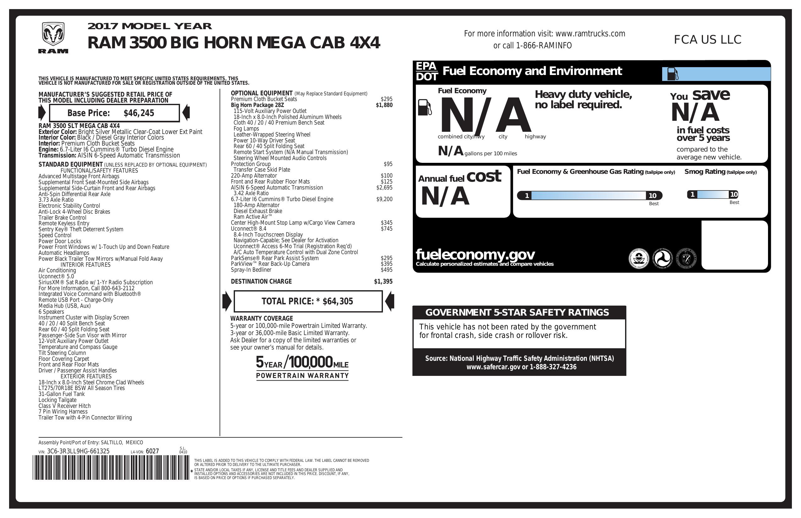 2017 Ram 3500 Big Horn 4x4 Mega Cab 6'4" Box