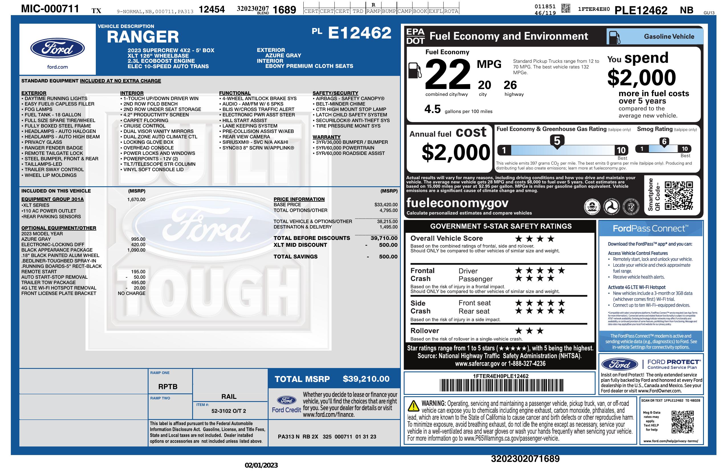 2023 Ford Ranger 2 Wd Super Crew 5' Box