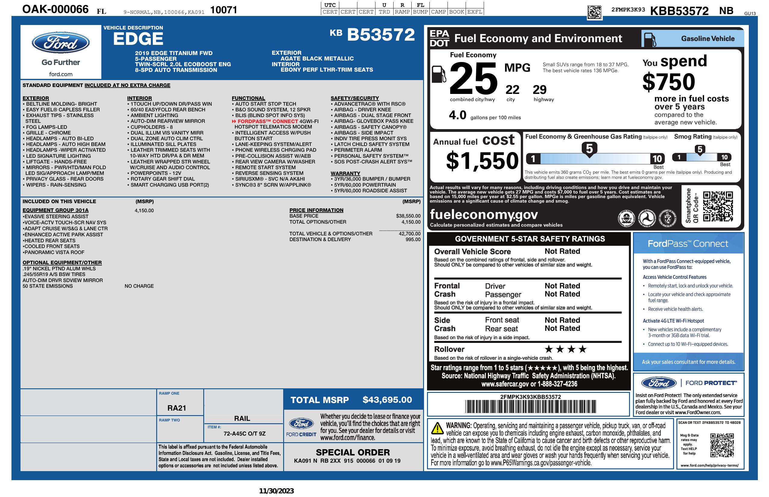 2019 Ford Edge Titanium Fwd
