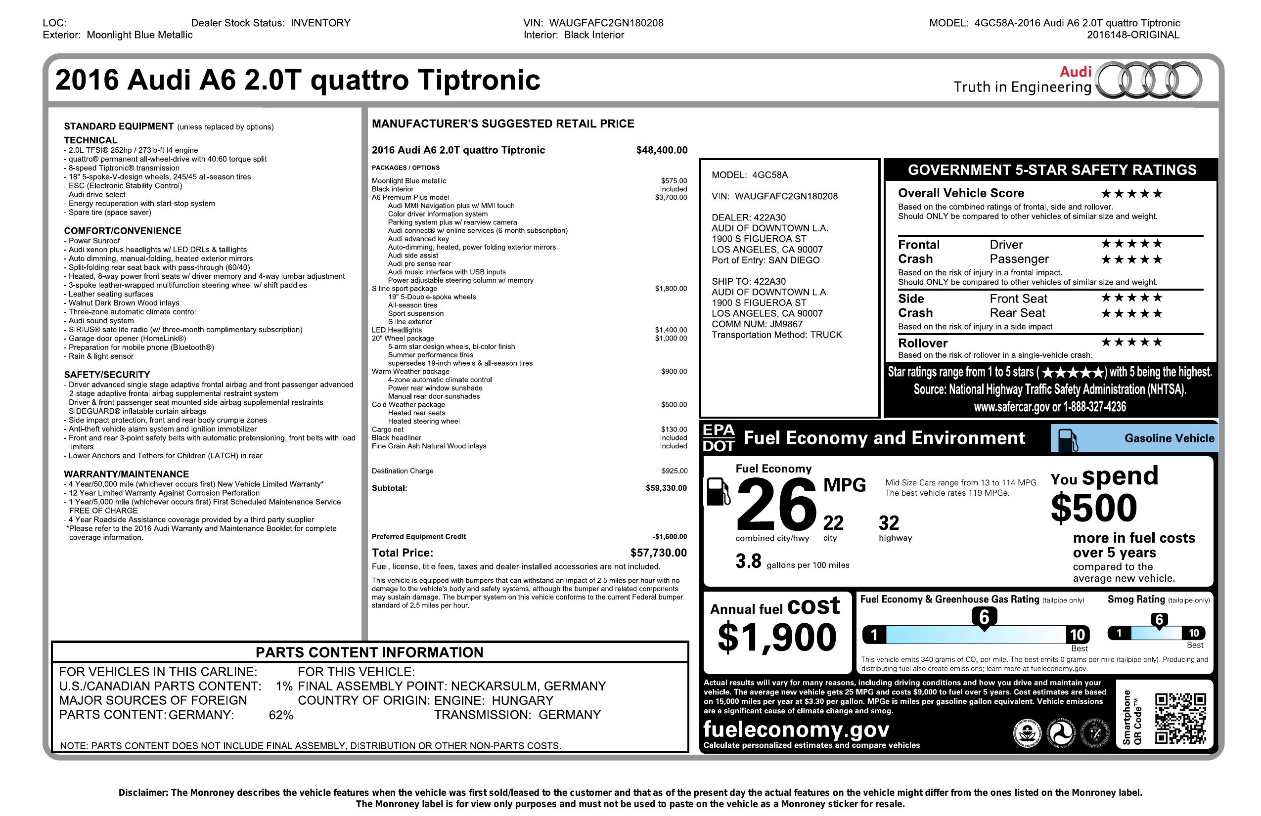 2016 Audi A6 4dr Sdn Quattro 2.0 T Premium Plus