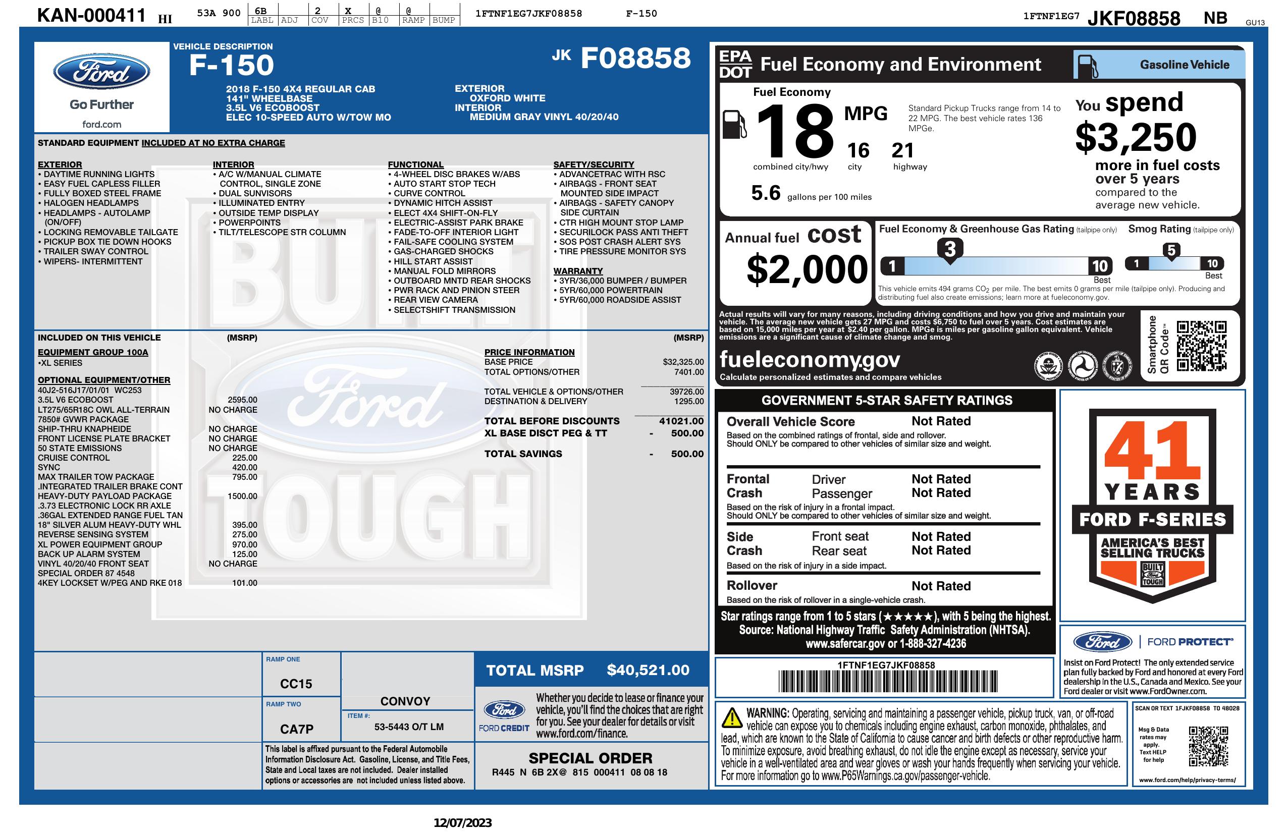 2018 Ford F 150 4 Wd Reg Cab 8' Box