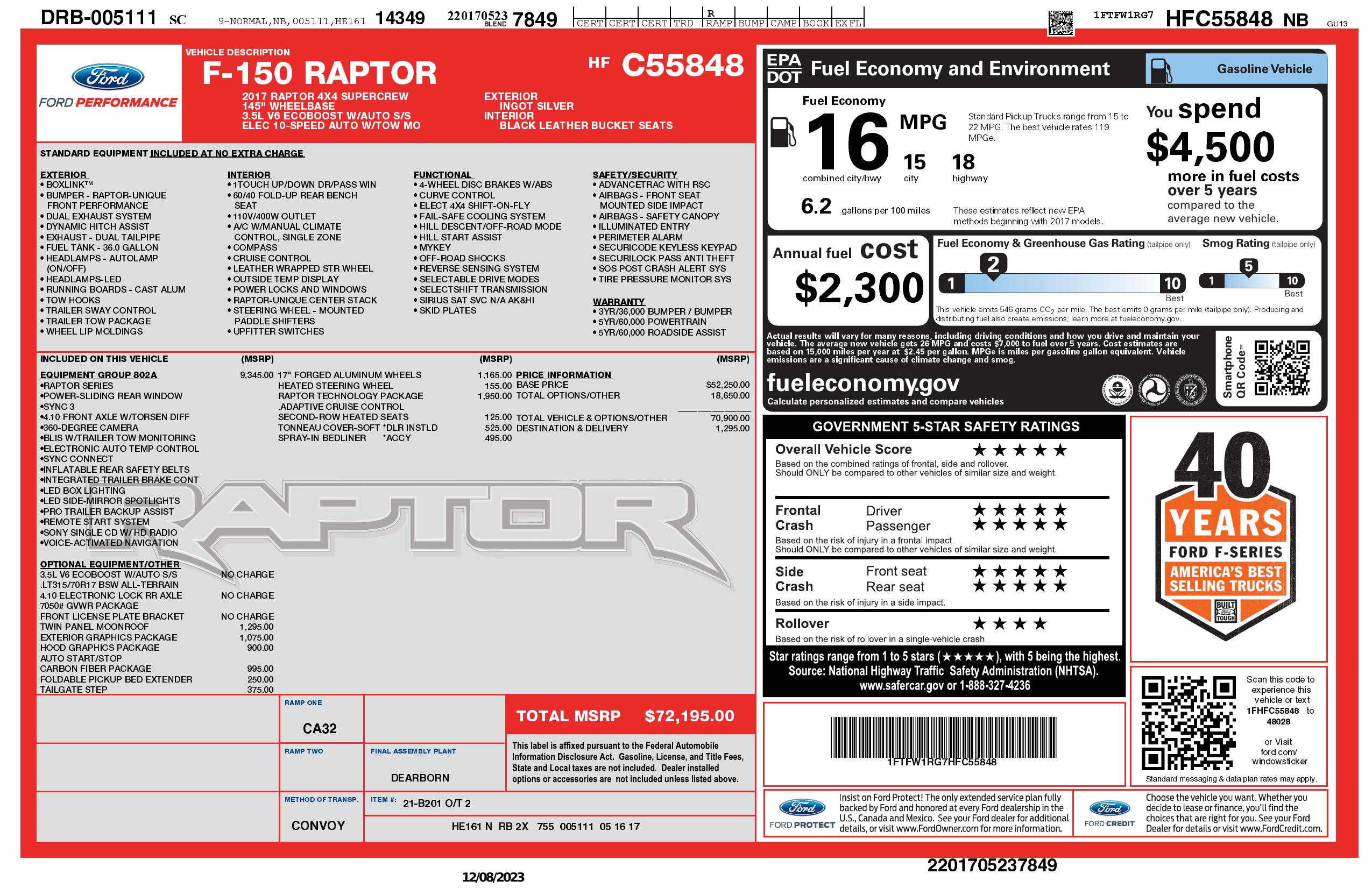 2017 Ford F 150 Raptor 4 Wd Super Crew 5.5' Box