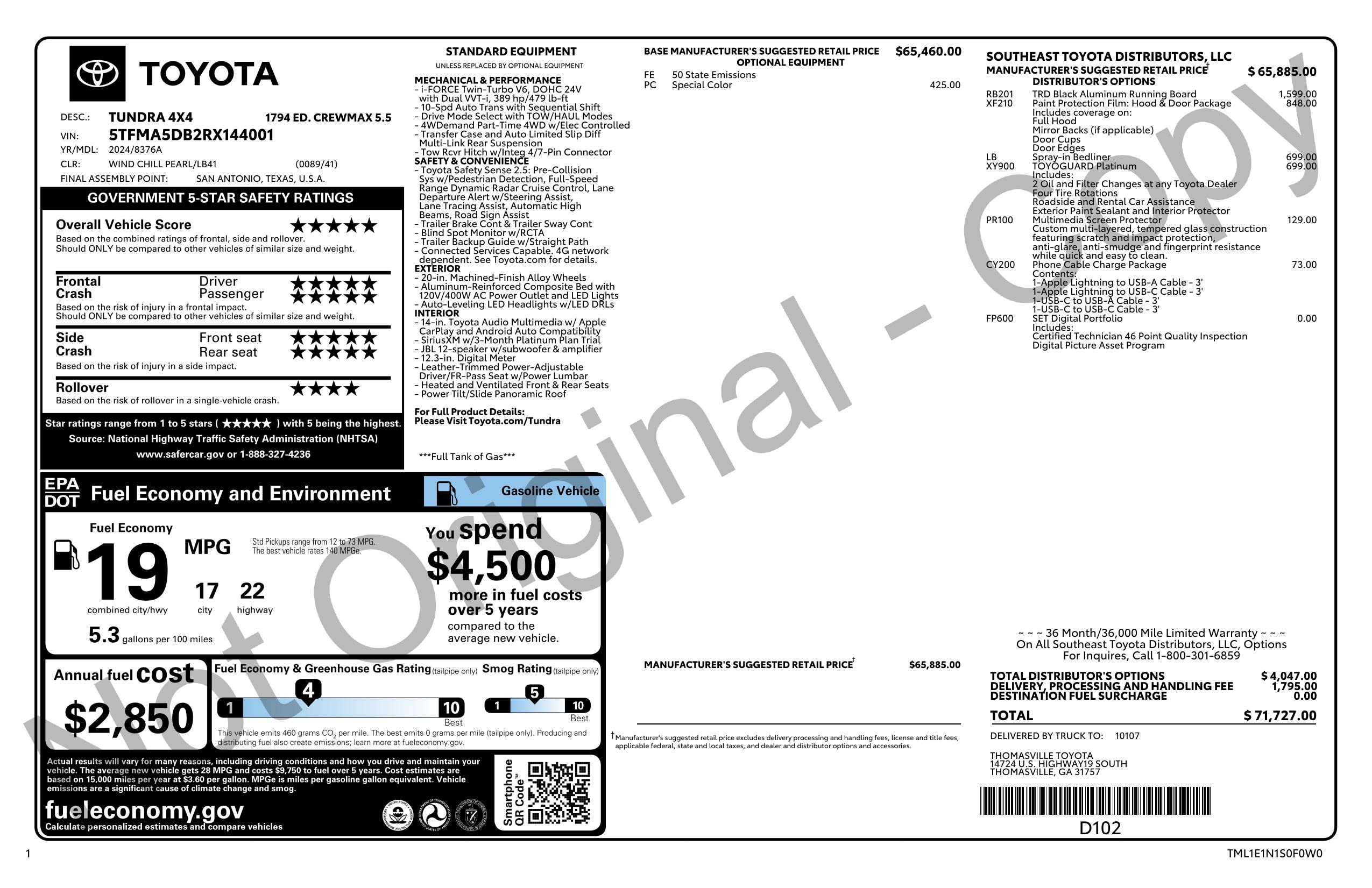 2024 Toyota Tundra 4 Wd 1794 Edition Crew Max 5.5' Bed (Natl)