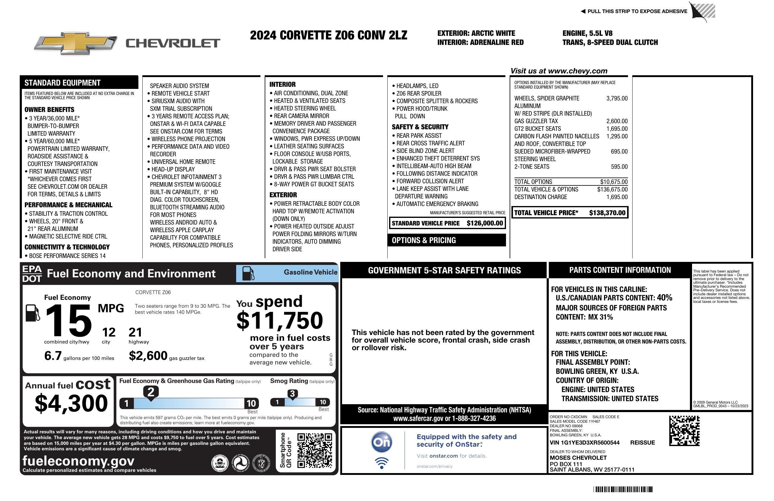 2024 Chevrolet Corvette 2dr Z06 Conv W/2 Lz