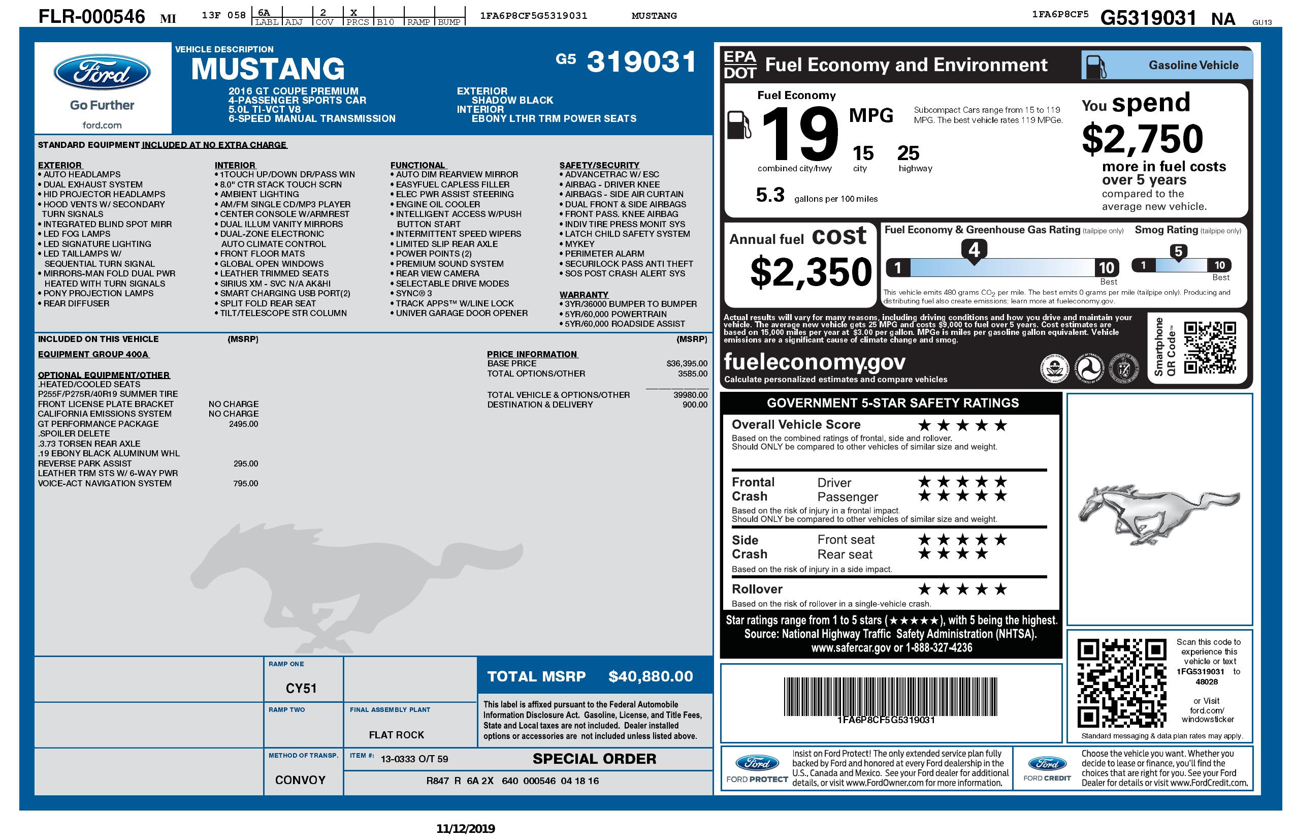 2016 Ford Mustang Gt Roush 2dr Fastback Gt