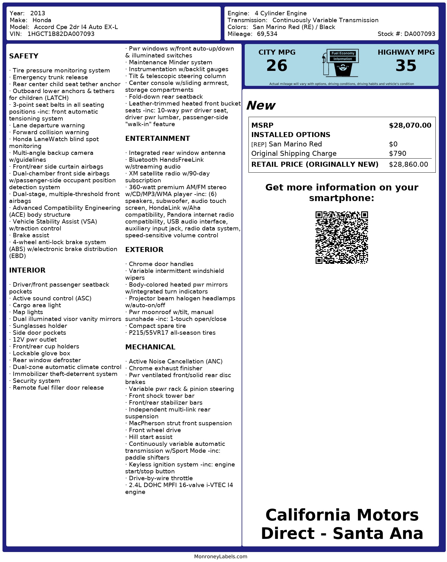 2013 Honda Accord Cpe 2dr I4 Auto Ex L