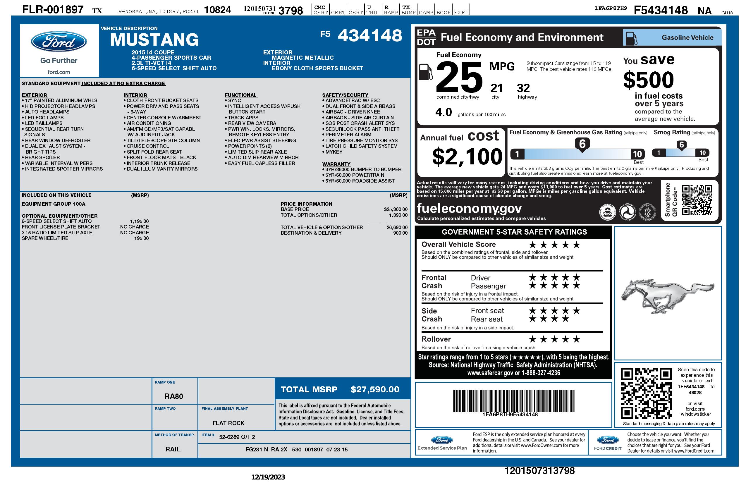 2015 Ford Mustang 2dr Fastback Eco Boost