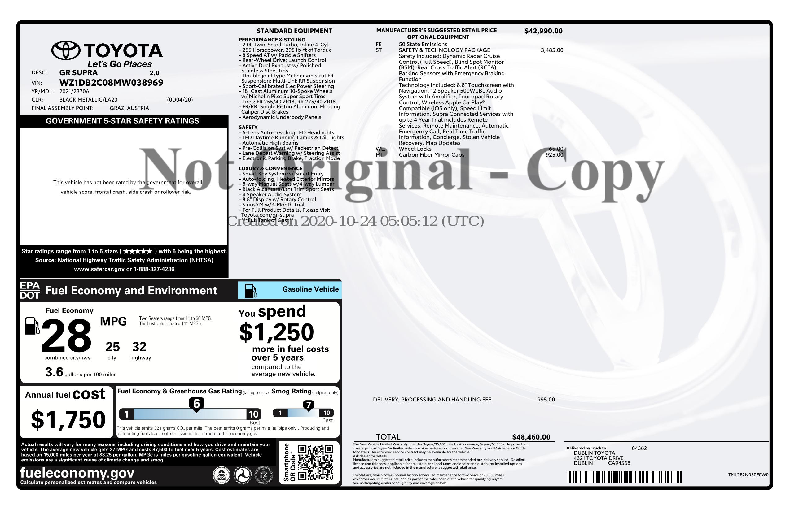 2021 Toyota Gr Supra 2.0 Auto (Natl)