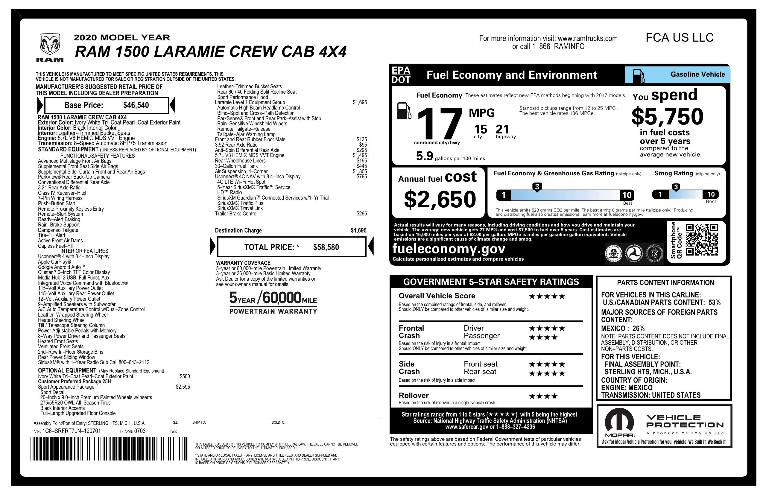 2020 Ram 1500 Laramie 4x4 Crew Cab 6'4" Box