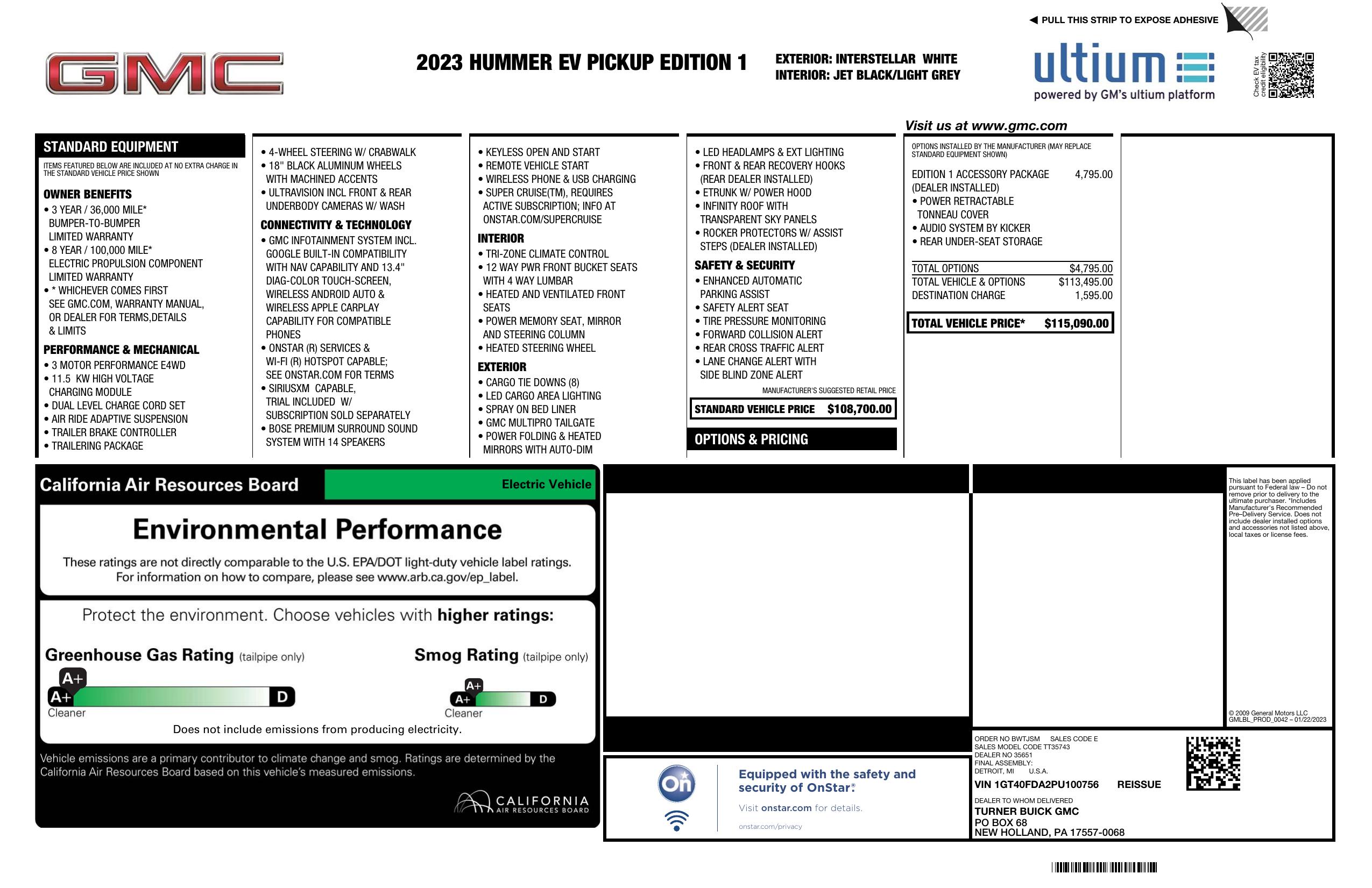 2023 GMC Hummer Ev Pickup E4 Wd Crew Cab 3 X