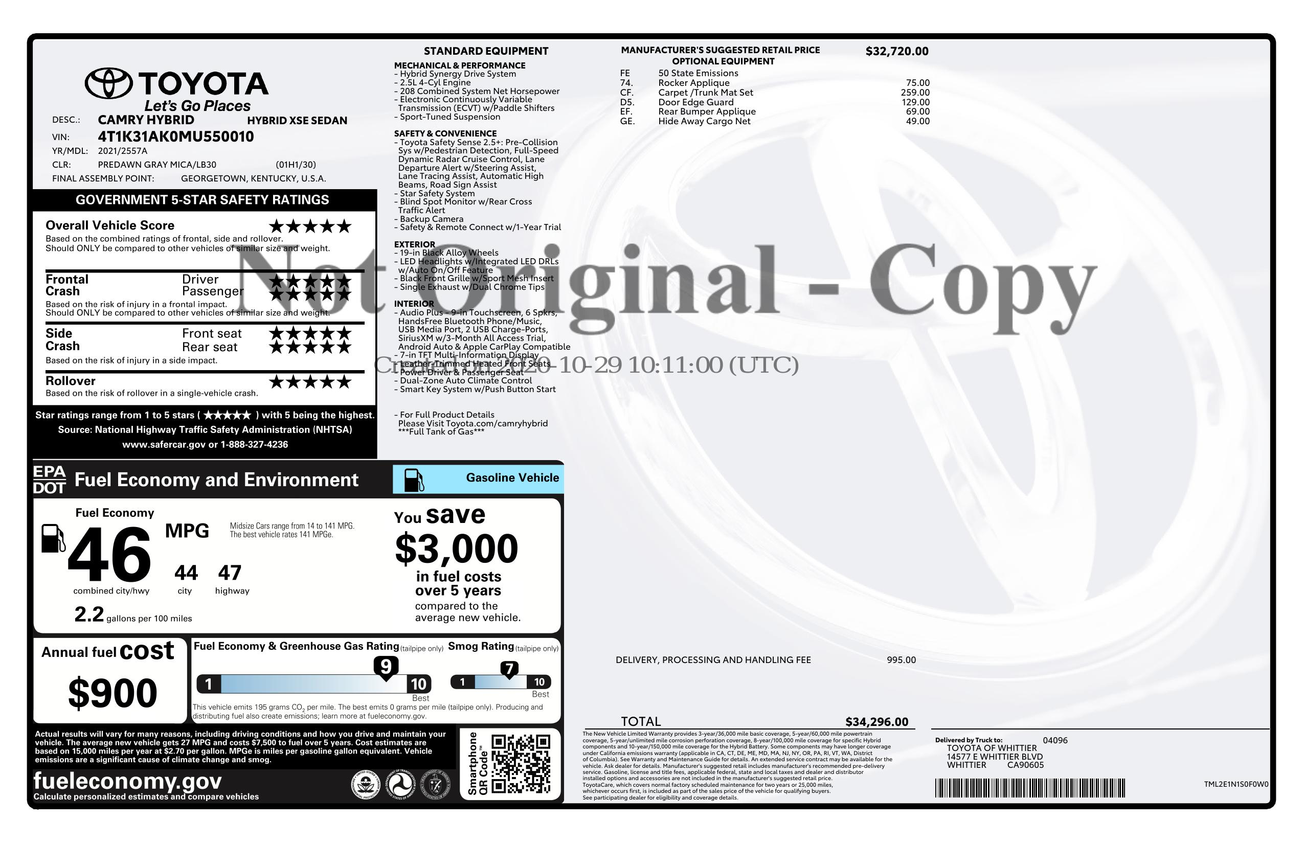 2021 Toyota Camry Hybrid Xse Cvt (Natl)