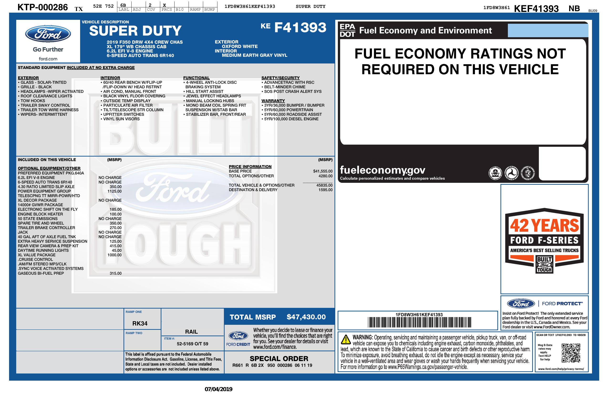 2019 Ford Super Duty F 350 Drw 4 Wd Crew Cab 179" Wb 60" Ca
