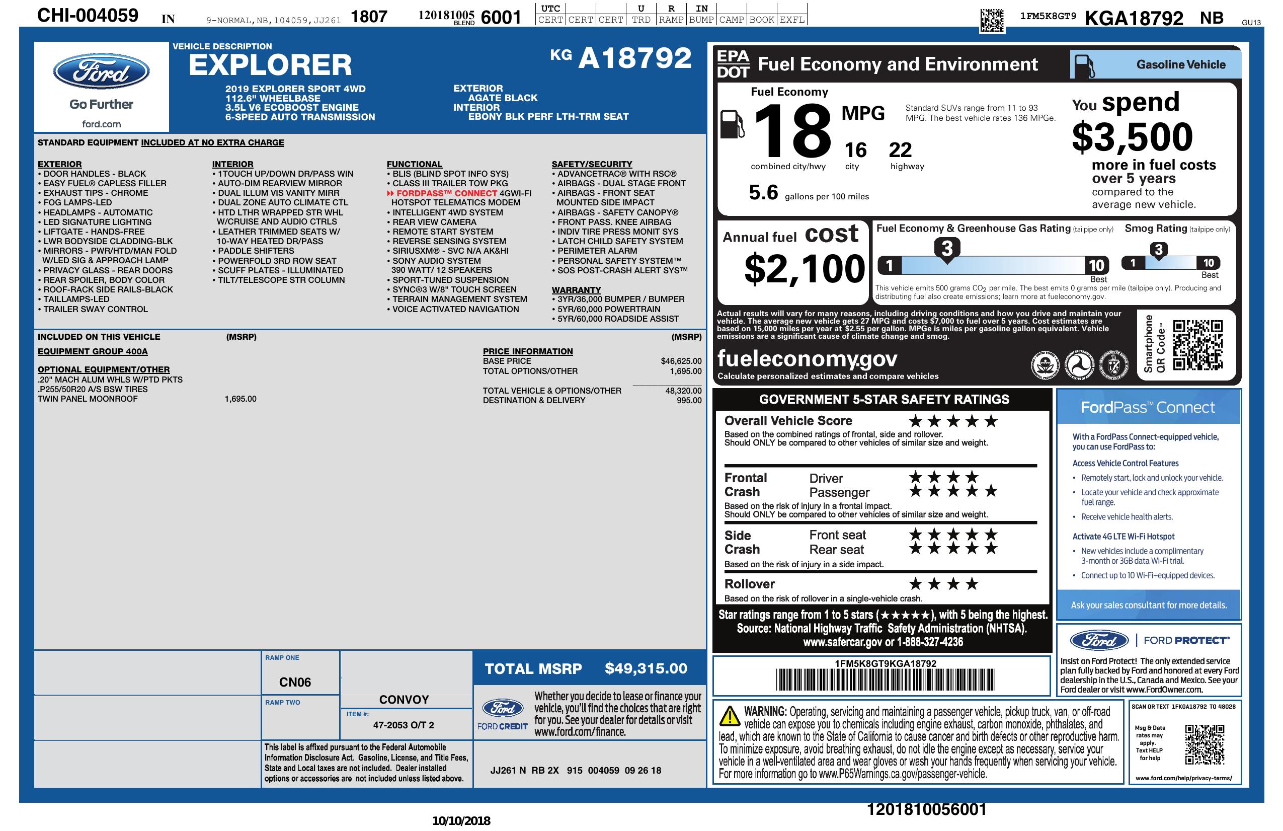2019 Ford Explorer Sport 4 Wd