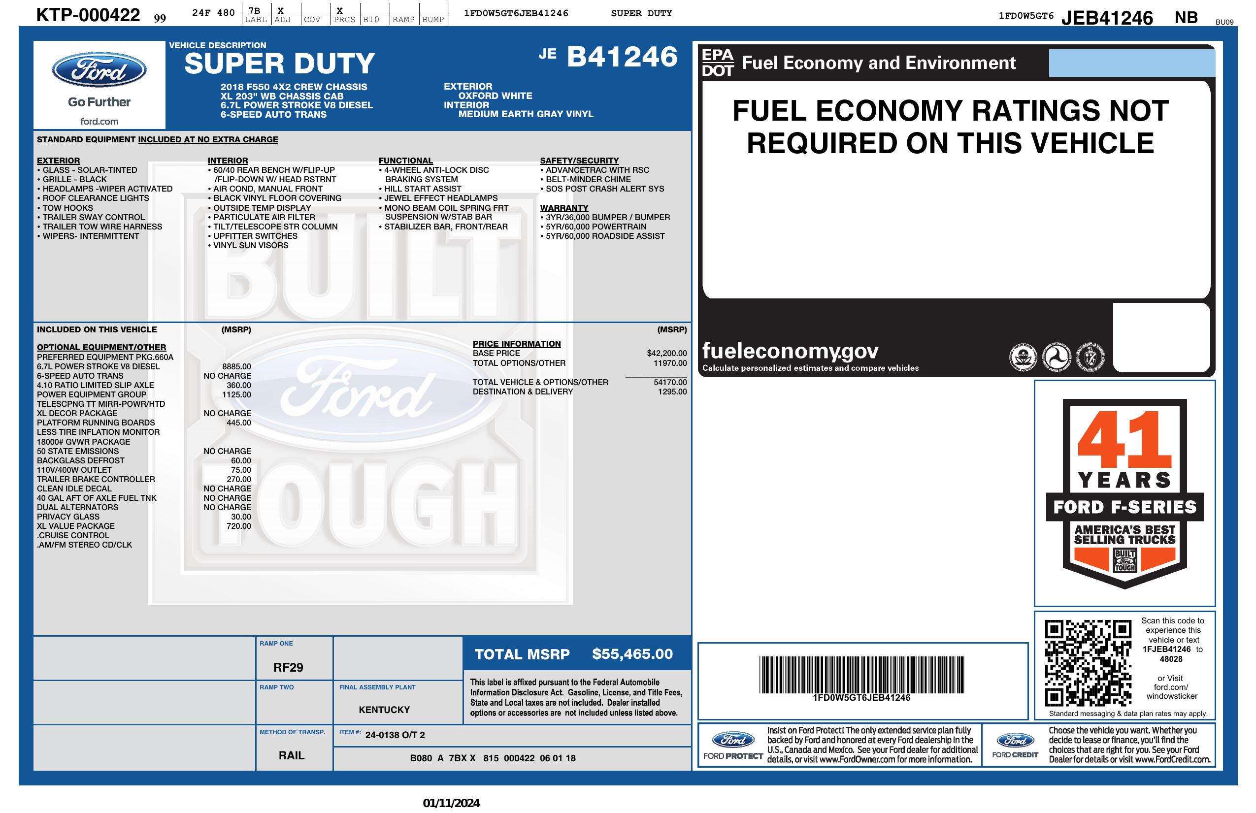2018 Ford Super Duty F 550 Drw 2 Wd Crew Cab Wb Ca