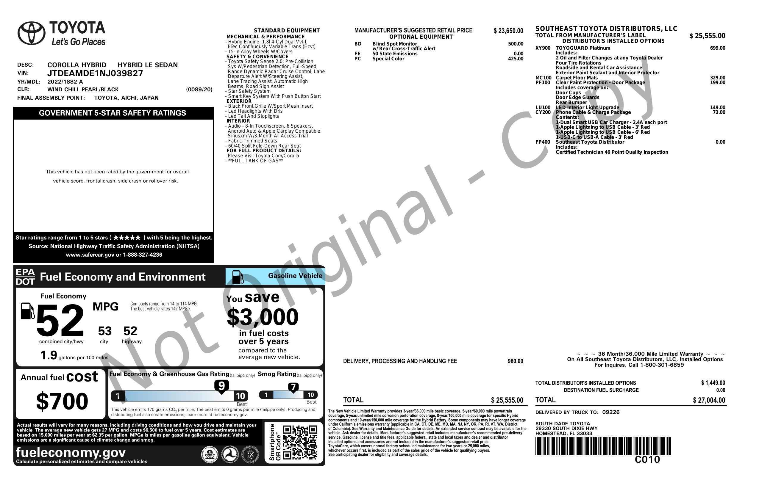 2022 Toyota Corolla Hybrid Le Cvt (Natl)