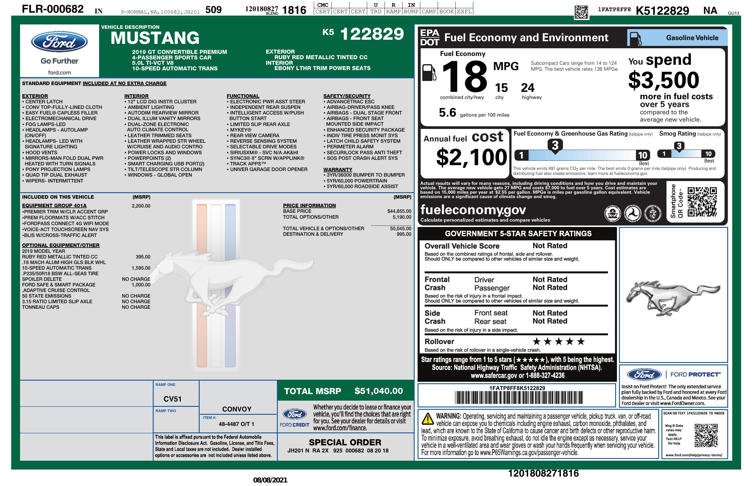 2019 Ford Mustang Gt Premium Convertible