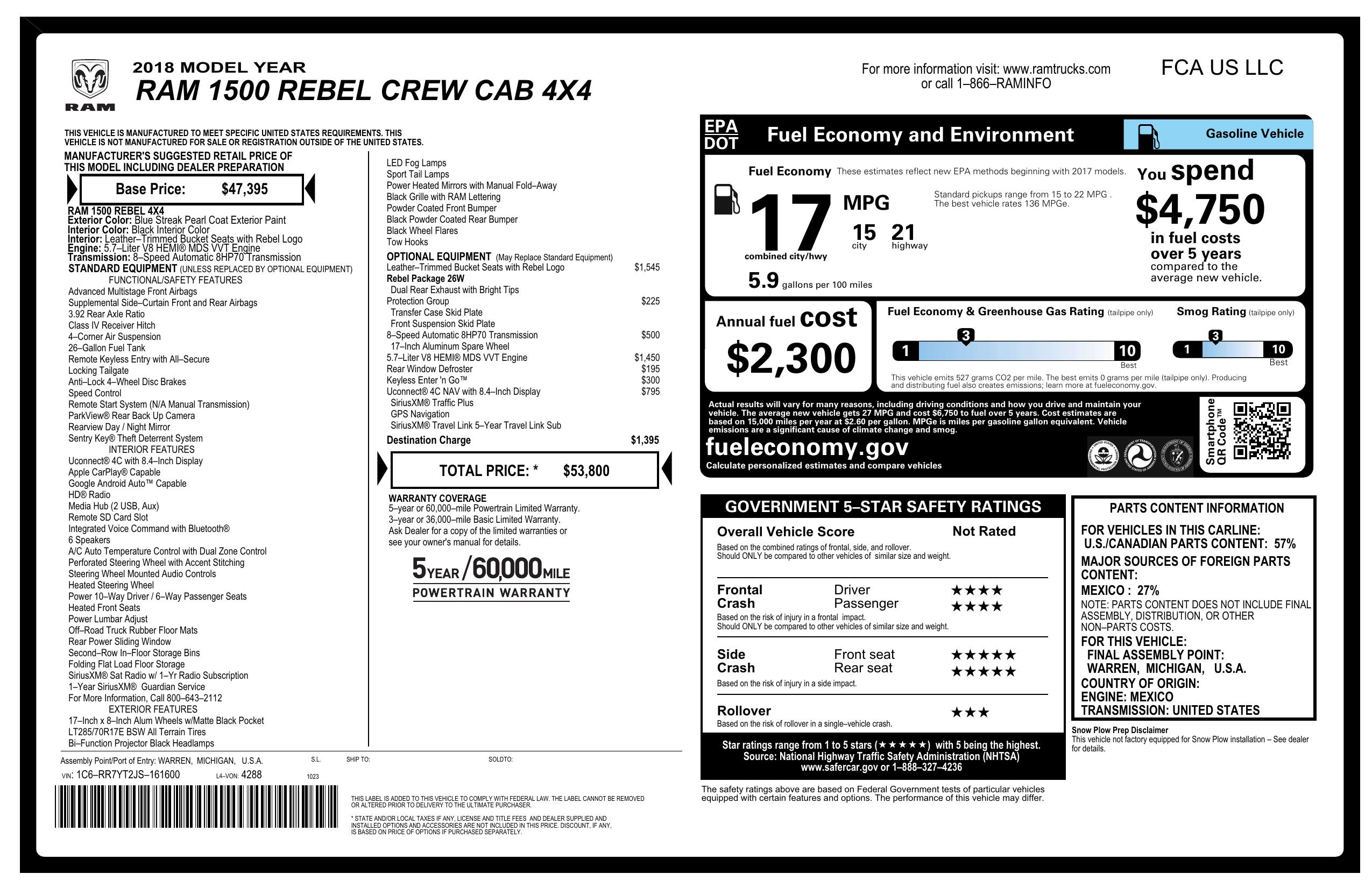 2018 Ram 1500 Rebel 4x4 Crew Cab 5'7" Box