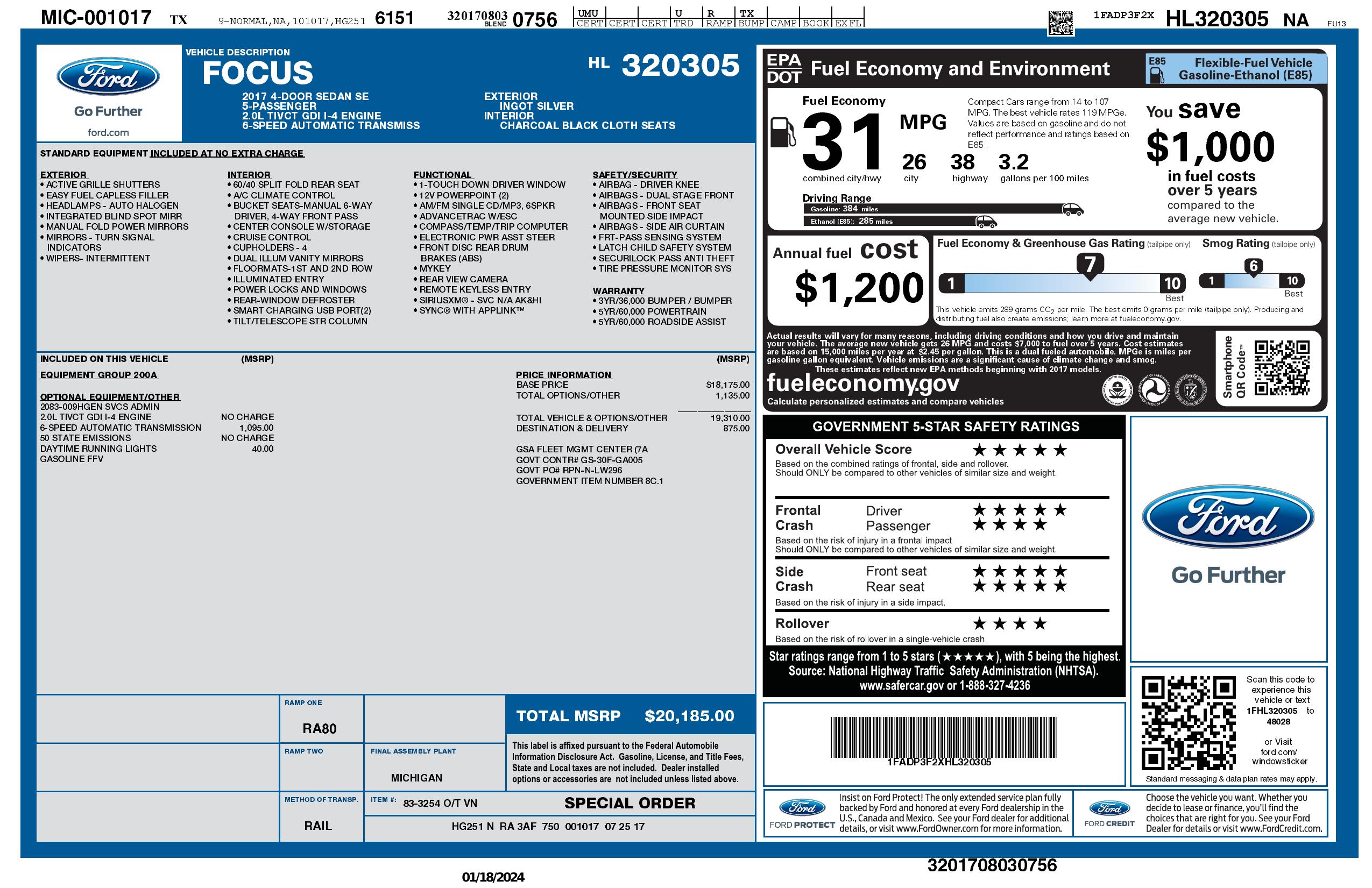 2017 Ford Focus Se Sedan 4 D