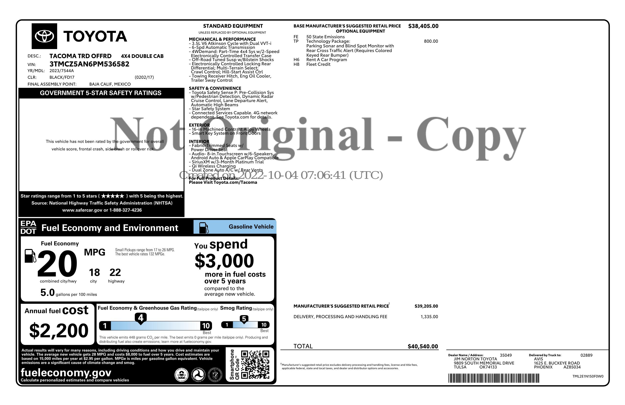 2023 Toyota Tacoma 4 Wd Double Cab 5' Bed V6 (Natl)