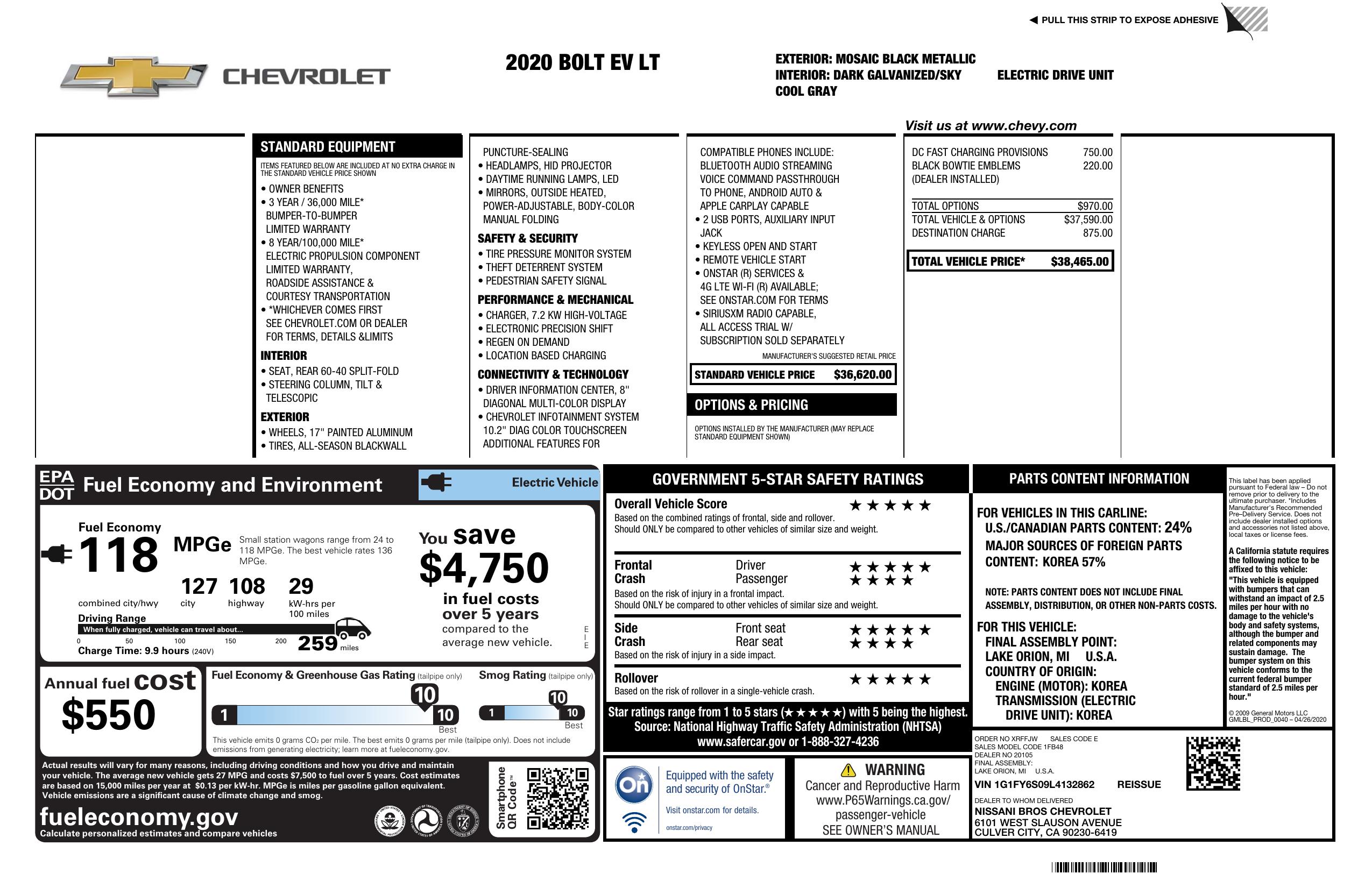 2020 Chevrolet Bolt Ev 5dr Wgn Lt