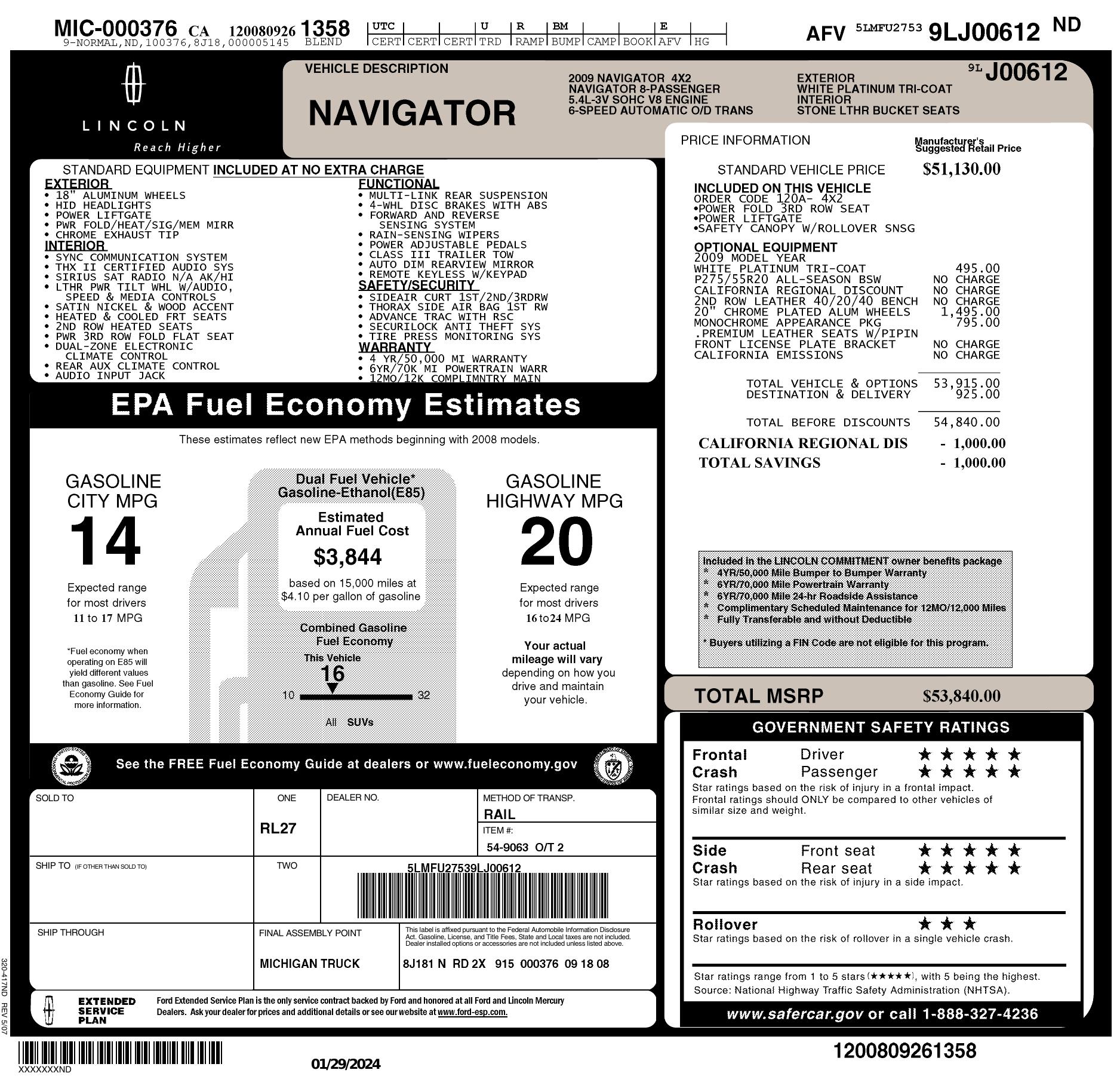 2009 Lincoln Navigator 2 Wd 4dr